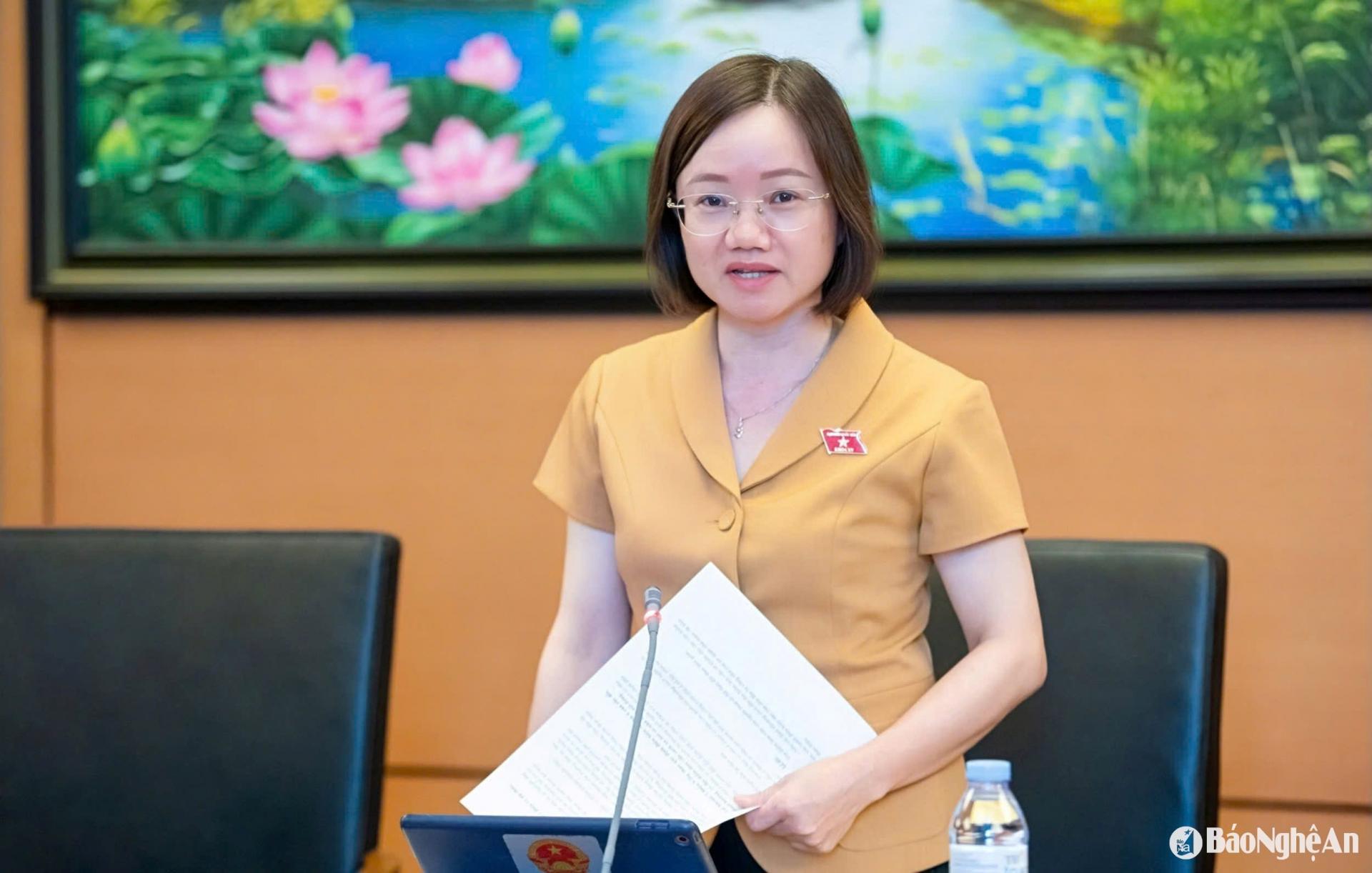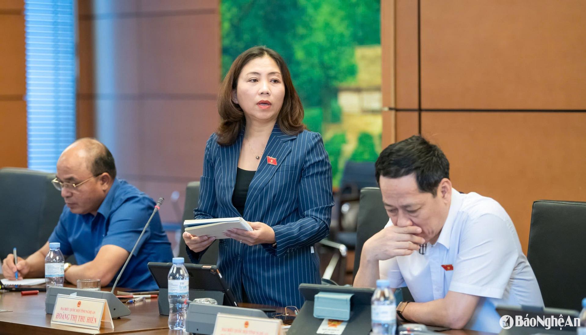 | Đại biểu Thái Thị An Chung - Ủy viên Ban Chấp hành Đảng bộ tỉnh, Phó Trưởng đoàn chuyên trách Đoàn ĐBQH Nghệ An phát biểu thảo luận. |