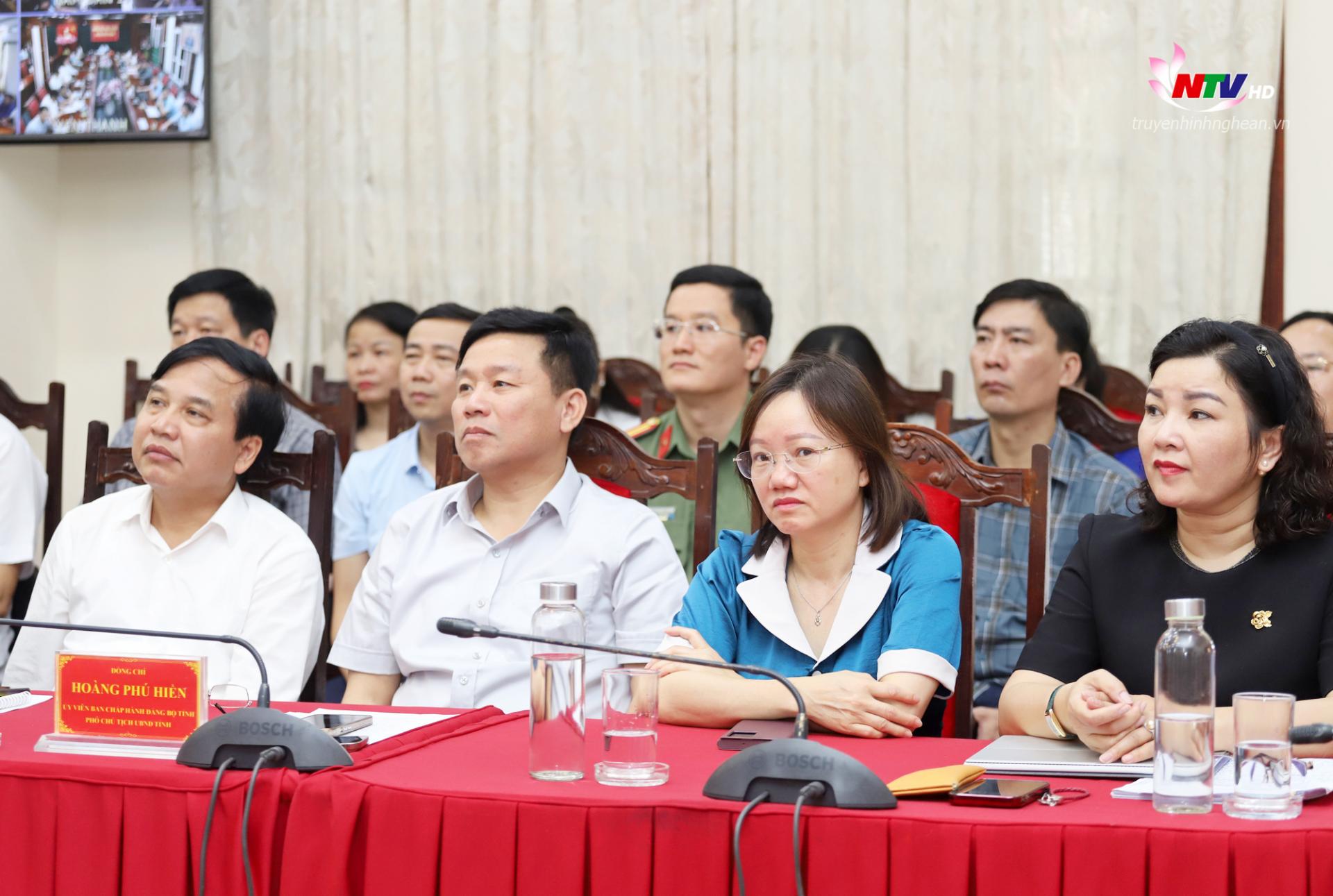 | Phó trưởng đoàn ĐBQH tỉnh, các đồng chí Phó Chủ tịch HĐND tỉnh, UBND tỉnh, các Ban của tỉnh tham dự hội nghị tại điểm cầu Nghệ An. |