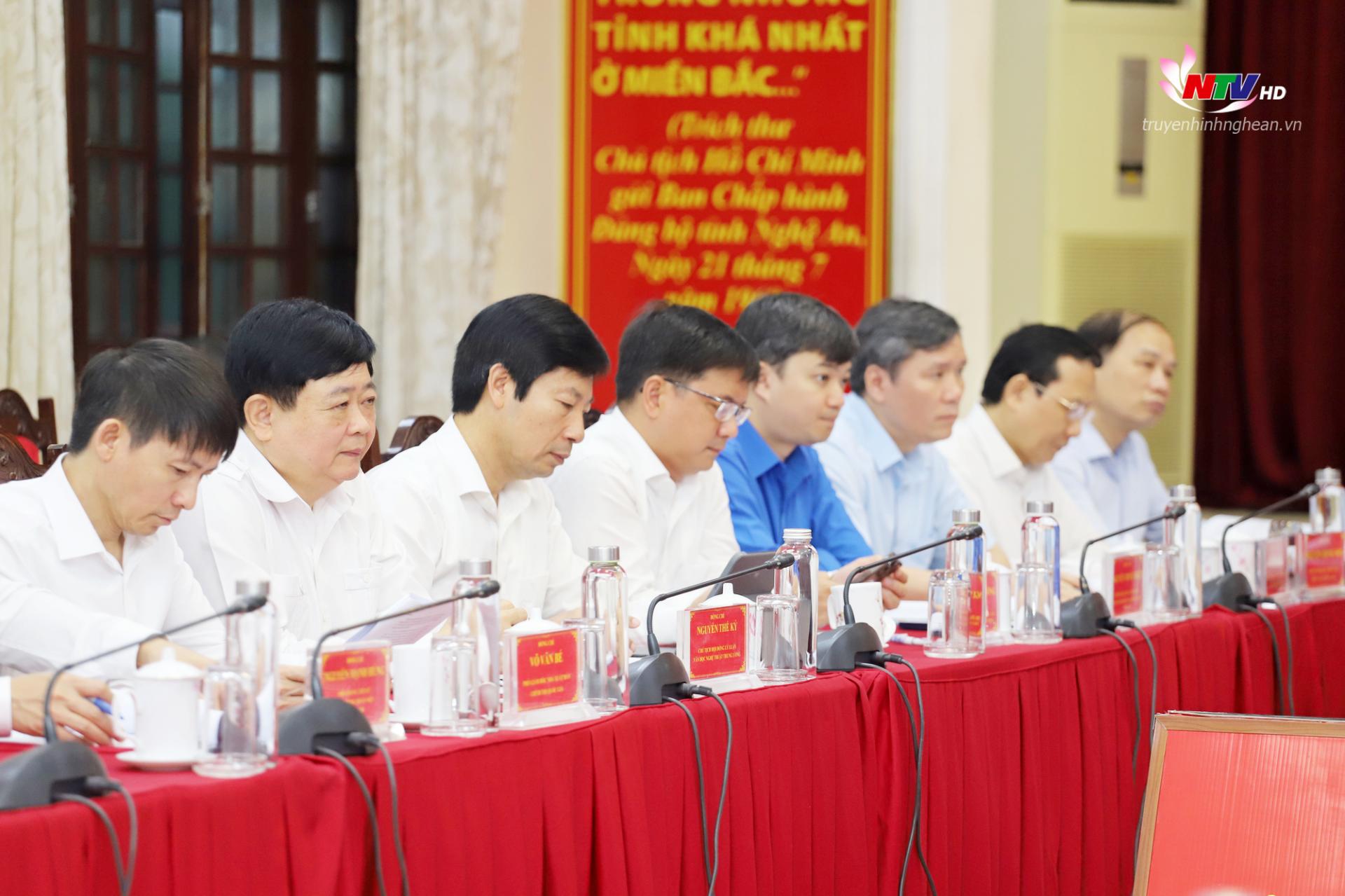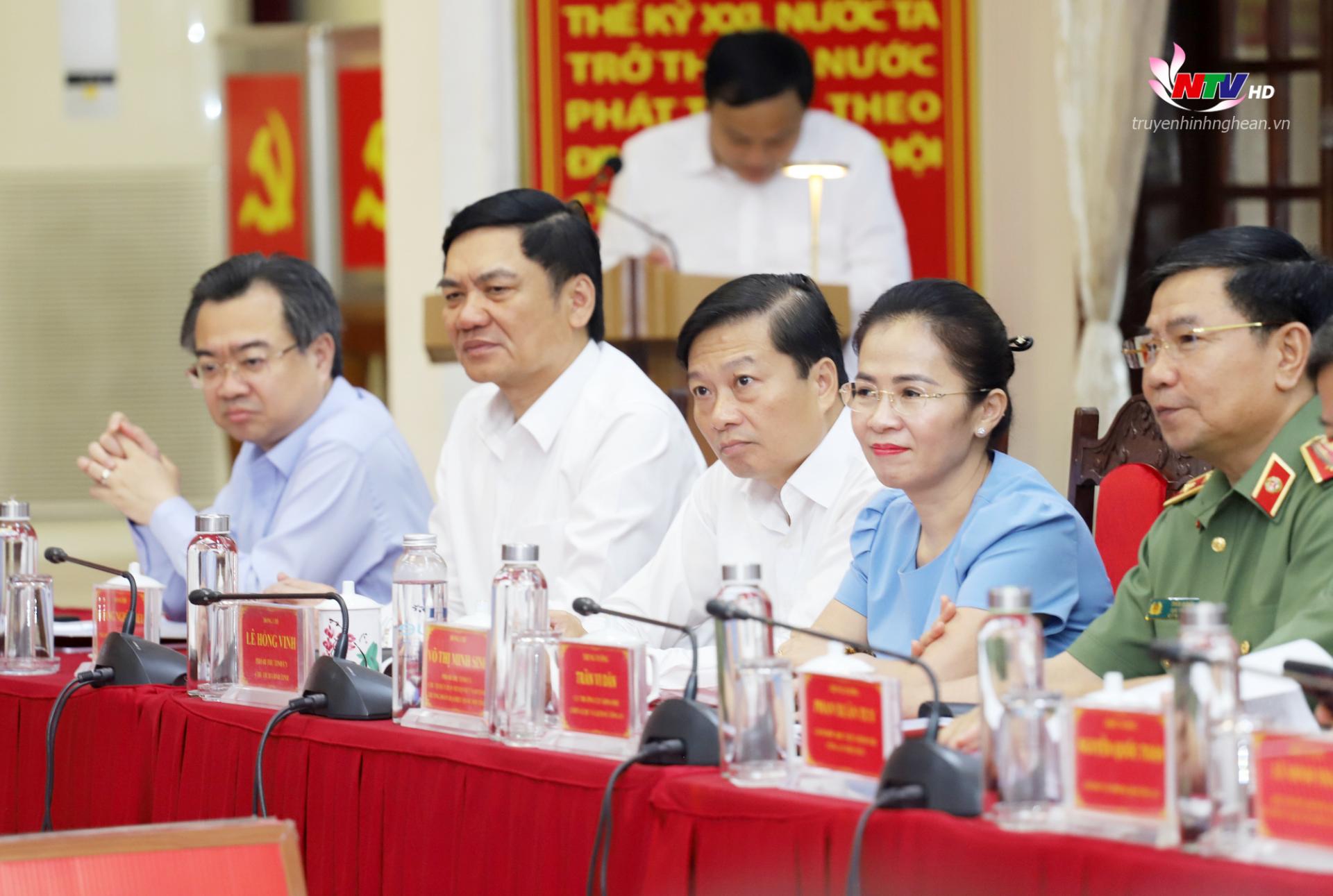 Lãnh đạo tỉnh Nghệ An có các đồng chí: Nguyễn Đức Trung - Bí thư Tỉnh ủy; Hoàng Nghĩa Hiếu - Phó Bí thư Thường trực Tỉnh ủy, Chủ tịch HĐND tỉnh; Lê Hồng Vinh - Phó Bí thư Tỉnh ủy, Chủ tịch UBND tỉnh; Võ Thị Minh Sinh - Phó Bí thư Tỉnh ủy, Chủ tịch Ủy ban MTTQ tỉnh, Trưởng đoàn ĐBQH tỉnh; cùng các đồng chí Ủy viên Ban Thường vụ Tỉnh ủy, Ủy viên Ban Chấp hành Đảng bộ tỉnh, Ủy viên Ủy ban Kiểm tra Tỉnh ủy; lãnh đạo các ban, sở, ngành, MTTQ tỉnh, các tổ chức chính trị - xã hội, báo cáo viên cấp tỉnh, Hiệu trưởng, Phó Hiệu trưởng Trường Chính trị tỉnh.
