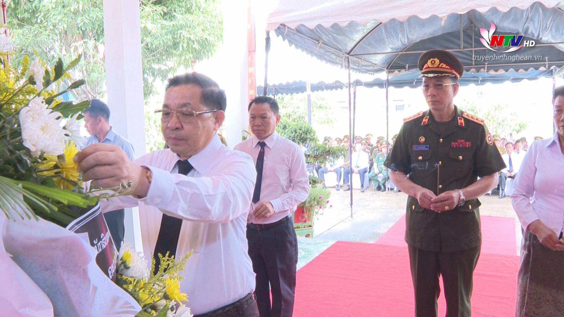 Các đoàn đại biểu của Ban Công tác các tỉnh Viêng Chăn, Xay Sổm Bun, các tổ chức chính trị xã hội, lực lượng vũ trang của nước bạn Lào và Hội kiều bào tại tỉnh Xiêng Khoảng cũng lần lượt dâng hoa tưởng niệm.