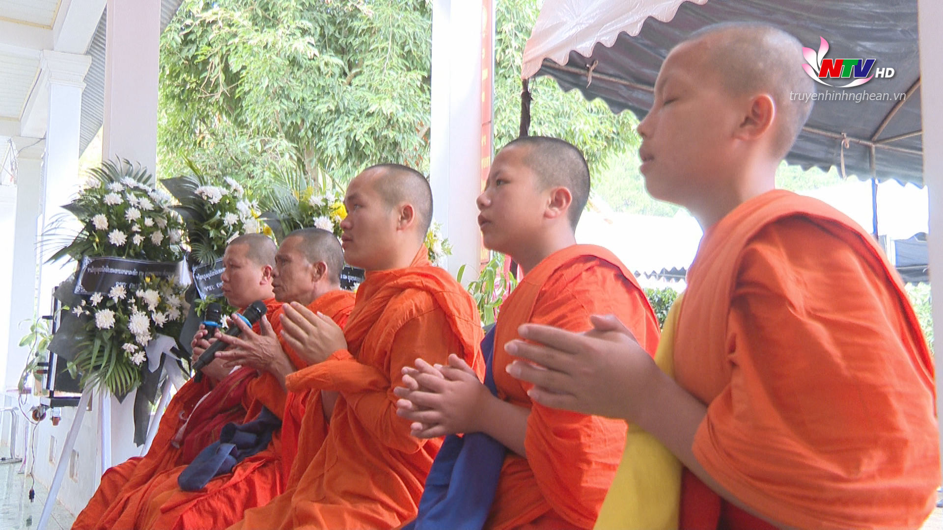 Lễ cầu siêu được tổ chức trang trọng, theo đúng nghi thức truyền thống của nhân dân các bộ tộc Lào, thể hiện tình cảm sâu nặng và sự tri ân sâu sắc đối với các anh hùng liệt sĩ hy sinh trên đất nước Lào.