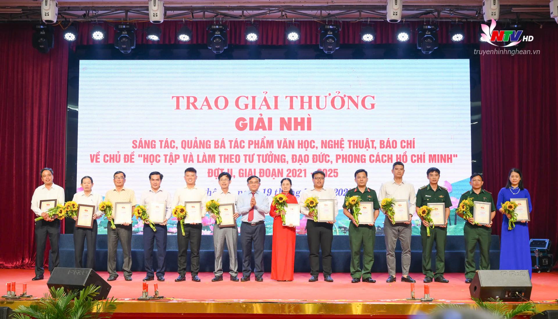| Đồng chí Ngọc Kim Nam - Ủy viên Ban Thường vụ Tỉnh ủy, Trưởng ban Tuyên giáo và Dân vận Tỉnh ủy Nghệ An trao giải Nhì cho các tác giả, nhóm tác giả đạt giải thưởng sáng tác, quảng bá tác phẩm văn học, nghệ thuật, báo chí về chủ đề “Học tập và làm theo tư tưởng, đạo đức, phong cách Hồ Chí Minh” cấp tỉnh, đợt II, giai đoạn 2021 - 2025. |