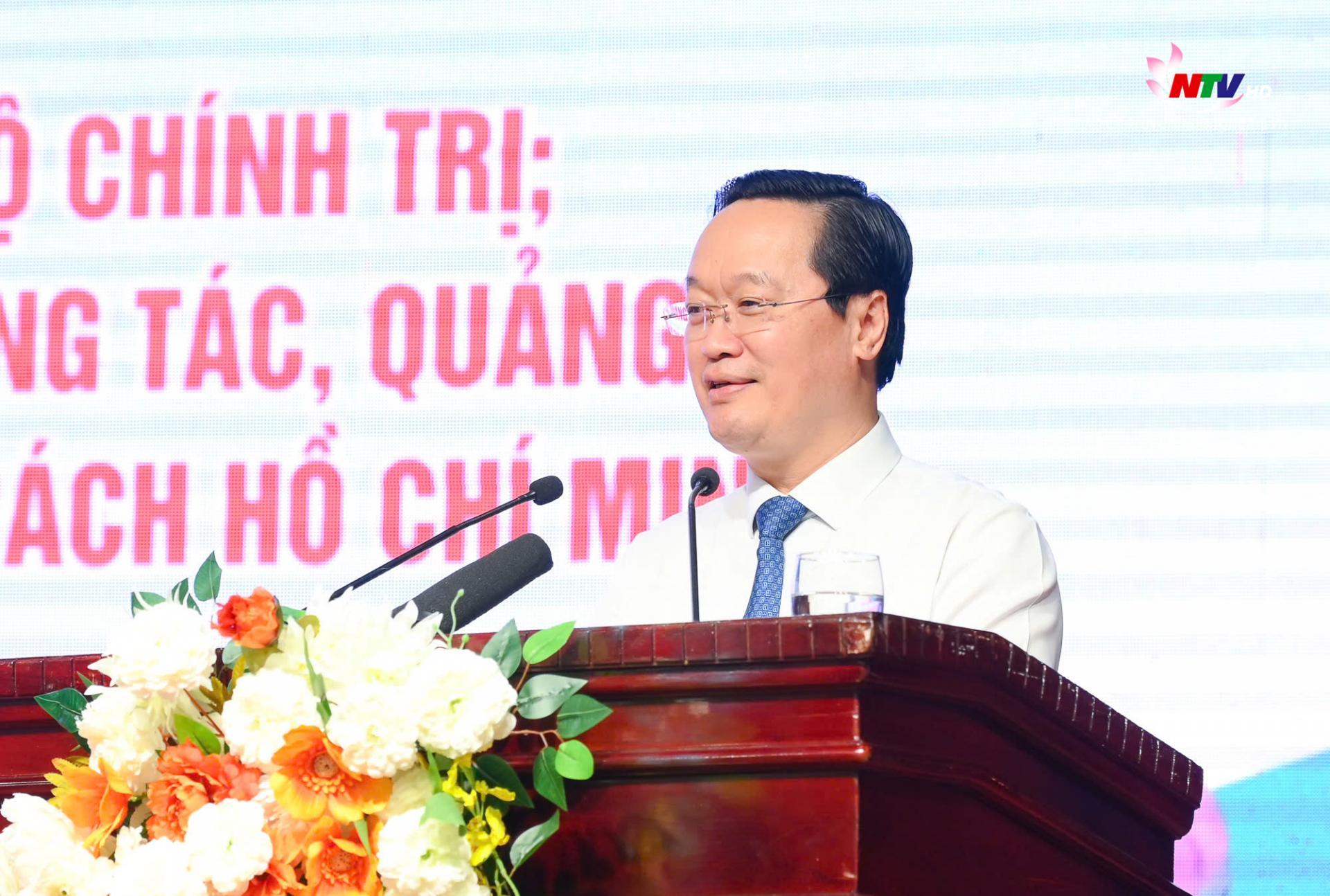 Với 10 chuyên đề, 6 đột phá, 3 sáng tạo, Nghệ An đã xây dựng được nhiều mô hình hay, cách làm sáng tạo, thiết thực trong học tập và làm theo tư tưởng, đạo đức, phong cách Hồ Chí Minh. Hàng nghìn tập thể, cá nhân tiêu biểu đã được khen thưởng, biểu dương từ cấp cơ sở đến Trung ương. Bí thư Tỉnh uỷ đồng thời nhấn mạnh: Trong giai đoạn hiện nay, toàn Đảng toàn dân ta đang bước vào kỷ nguyên mới - Kỷ nguyên khát vọng hùng cường, hội nhập toàn diện và đổi mới sâu rộng vì dân giàu nước mạnh. Để thực hiện khát vọng ấy, Bộ Chính trị vừa ban hành 4 Nghị quyết trụ cột. Tỉnh Nghệ An, quê hương Bác Hồ được Bộ Chính trị dành sự quan tâm đặc biệt với Nghị quyết số 39 về xây dựng và phát triển tỉnh Nghệ An đến năm 2030, tầm nhìn đến năm 2045. Mới đây, trong phiên làm việc với Ban Thường vụ Tỉnh ủy, Tổng Bí thư Tô Lâm đã kết luận 5 nội dung lớn rất quan trọng cho sự phát triển của tỉnh trong thời điểm hiện tại và lâu dài.
