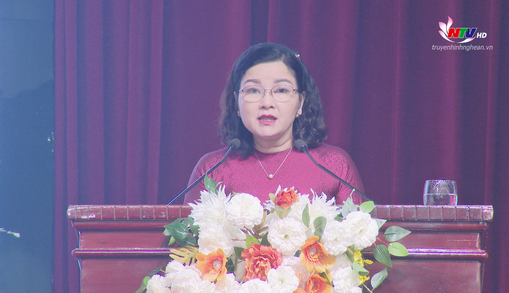 | Đồng chí Nguyễn Thị Hồng Hoa - Ủy viên Ban Chấp hành Đảng bộ tỉnh, Phó Trưởng Ban Tuyên giáo và Dân vận Tỉnh uỷ phát biểu khai mạc hội nghị. |