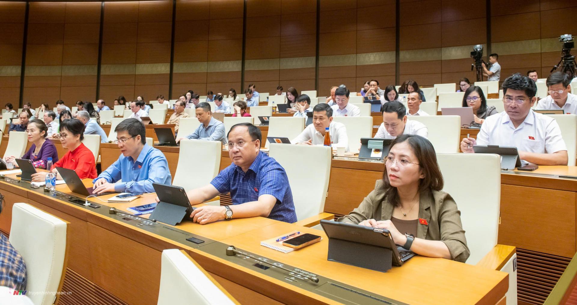 | ĐBQH đoàn Nghệ An tại phiên làm việc chiều 13/5 ở Hội trường Diên Hồng, Nhà Quốc hội. |