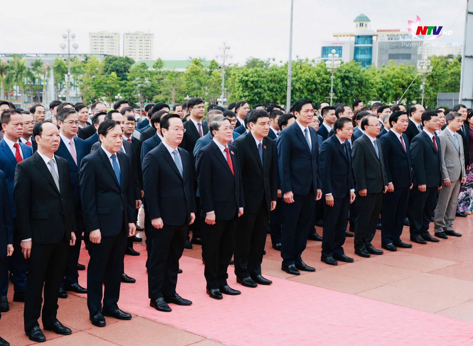 | Các đồng chí: Nguyễn Đức Hải - Ủy viên Ban Chấp hành Trung ương Đảng, Phó Chủ tịch Quốc hội; Nguyễn Đắc Vinh - Ủy viên Ban Chấp hành Trung ương Đảng, Chủ nhiệm Ủy ban Văn hoá Xã hội của Quốc hội; cùng các đồng chí đại diện lãnh đạo Ban, bộ, ngành Trung ương; lãnh đạo các Ủy ban của Quốc hội, Văn phòng Quốc hội tặng hoa chúc mừng tỉnh Nghệ An. |