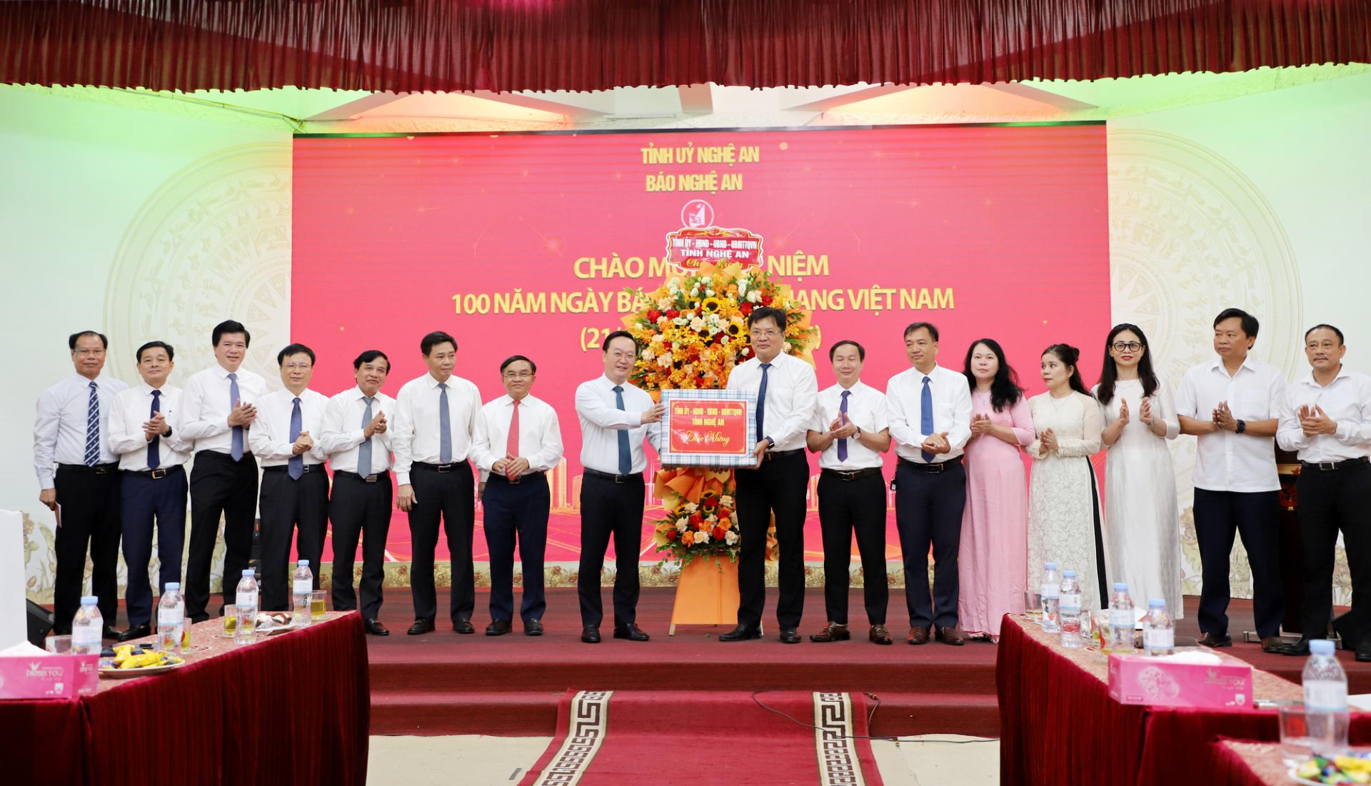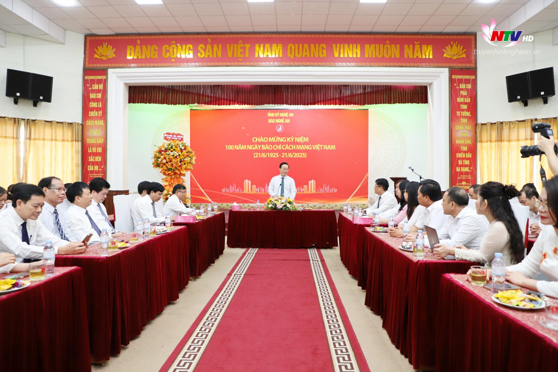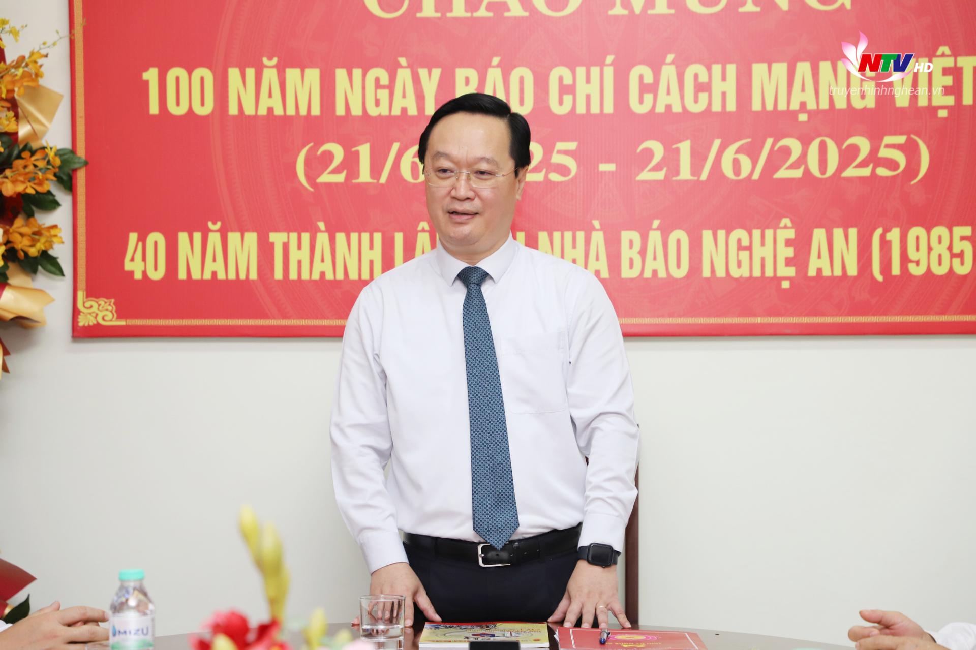 Chúc mừng cán bộ, phóng viên, biên tập viên Báo Nghệ An nhân dịp kỷ niệm 100 năm Ngày Báo chí Cách mạng Việt Nam, thay mặt lãnh đạo tỉnh, Bí thư Tỉnh uỷ đồng thời gửi lời tri ân tới những người đã và đang miệt mài cống hiến cho sự nghiệp báo chí cách mạng.