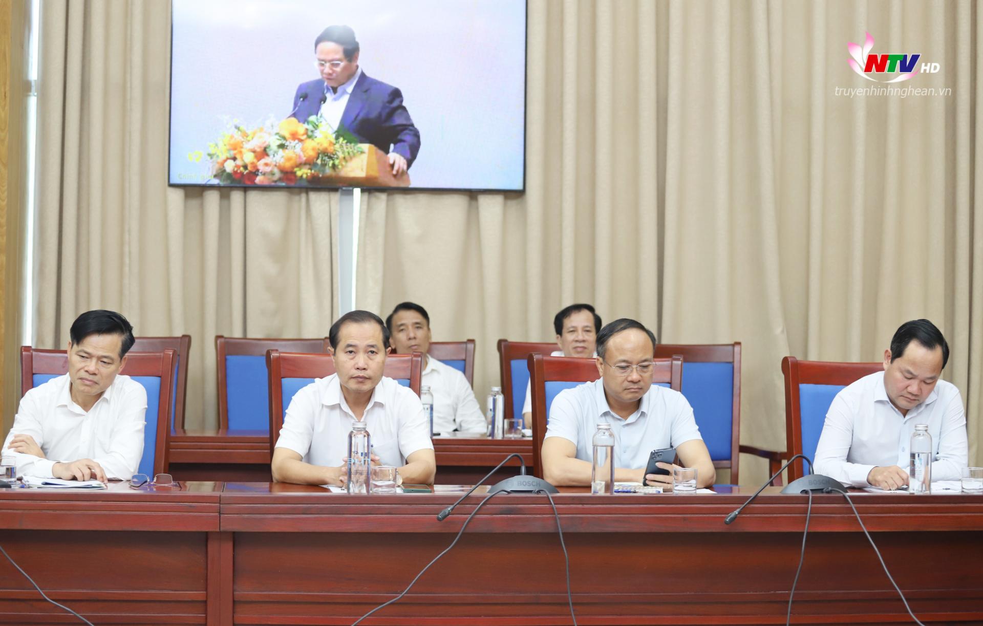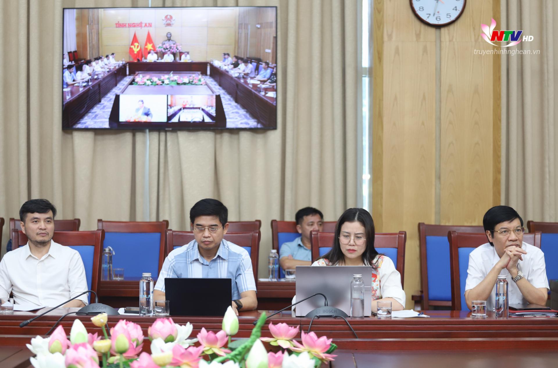 | Lãnh đạo các Sở, ban ngành dự hội nghị tại điểm cầu Nghệ An. |