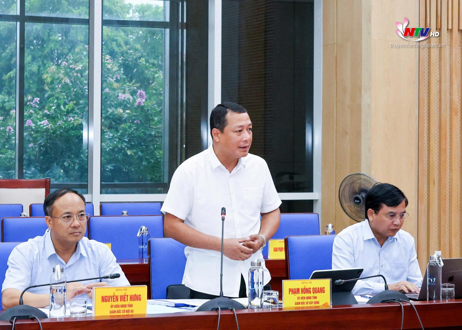 | Đồng chí Phạm Hồng Quang - Ủy viên Ban Chấp hành Đảng bộ tỉnh, Giám đốc Sở Xây dựng báo cáo tình hình bảo đảm trật tự, an toàn giao thông. |