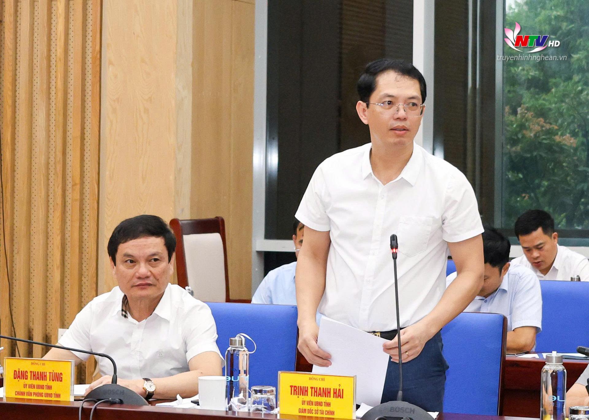 | Đồng chí Trịnh Thanh Hải - Ủy viên Ban Chấp hành Đảng bộ tỉnh, Giám đốc Sở Tài chính báo cáo công tác thực hành tiết kiệm, chống lãng phí. |
