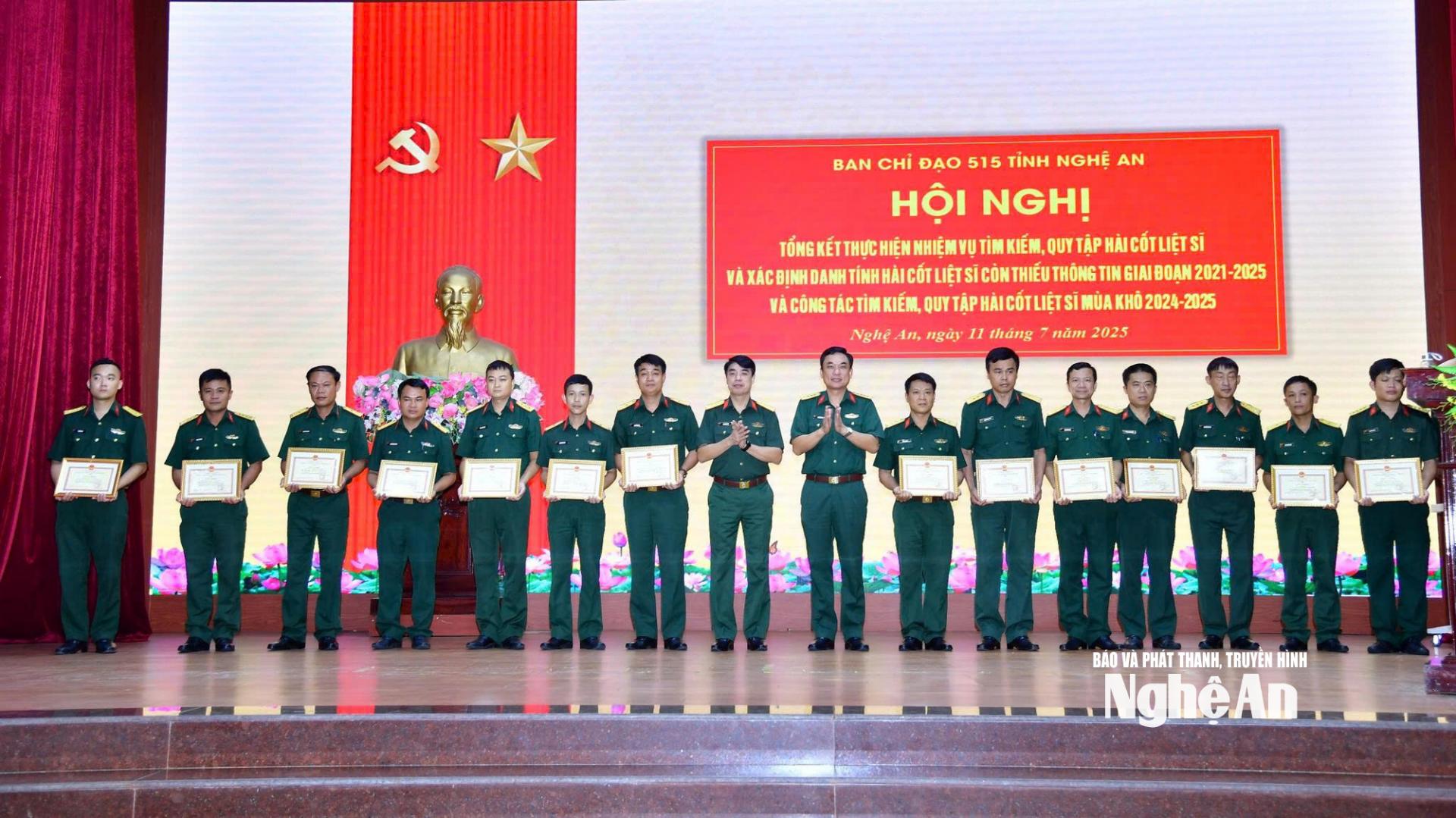 Dịp này BCĐ 515 tỉnh, Bộ CHQS Tỉnh đã biểu dương, khen thưởng các tập thể, cá nhân có thành tích xuất sắc trong công tác tìm kiếm, quy tập hài cốt liệt sĩ và xác định danh tính hài cốt liệt sỹ còn thiếu thông tin giai đoạn 2021 – 2025 và mùa khô 2024 – 2025.