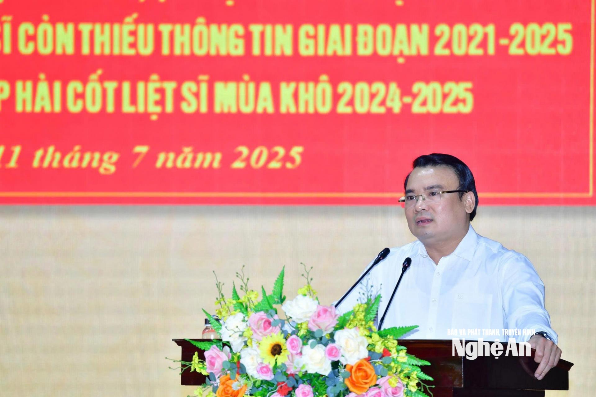 Thay mặt Ban Chỉ đạo 515 tỉnh Nghệ An, đồng chí Phùng Thành Vinh - Phó Chủ tịch UBND tỉnh khẳng định, công tác tìm kiếm, quy tập hài cốt liệt sĩ và xác định danh tính hài cốt liệt sĩ còn thiếu thông tin là nhiệm vụ thiêng liêng, cao cả của toàn Đảng, toàn quân, toàn dân; là trách nhiệm đối với cán bộ, chiến sĩ lực lượng vũ trang tỉnh.