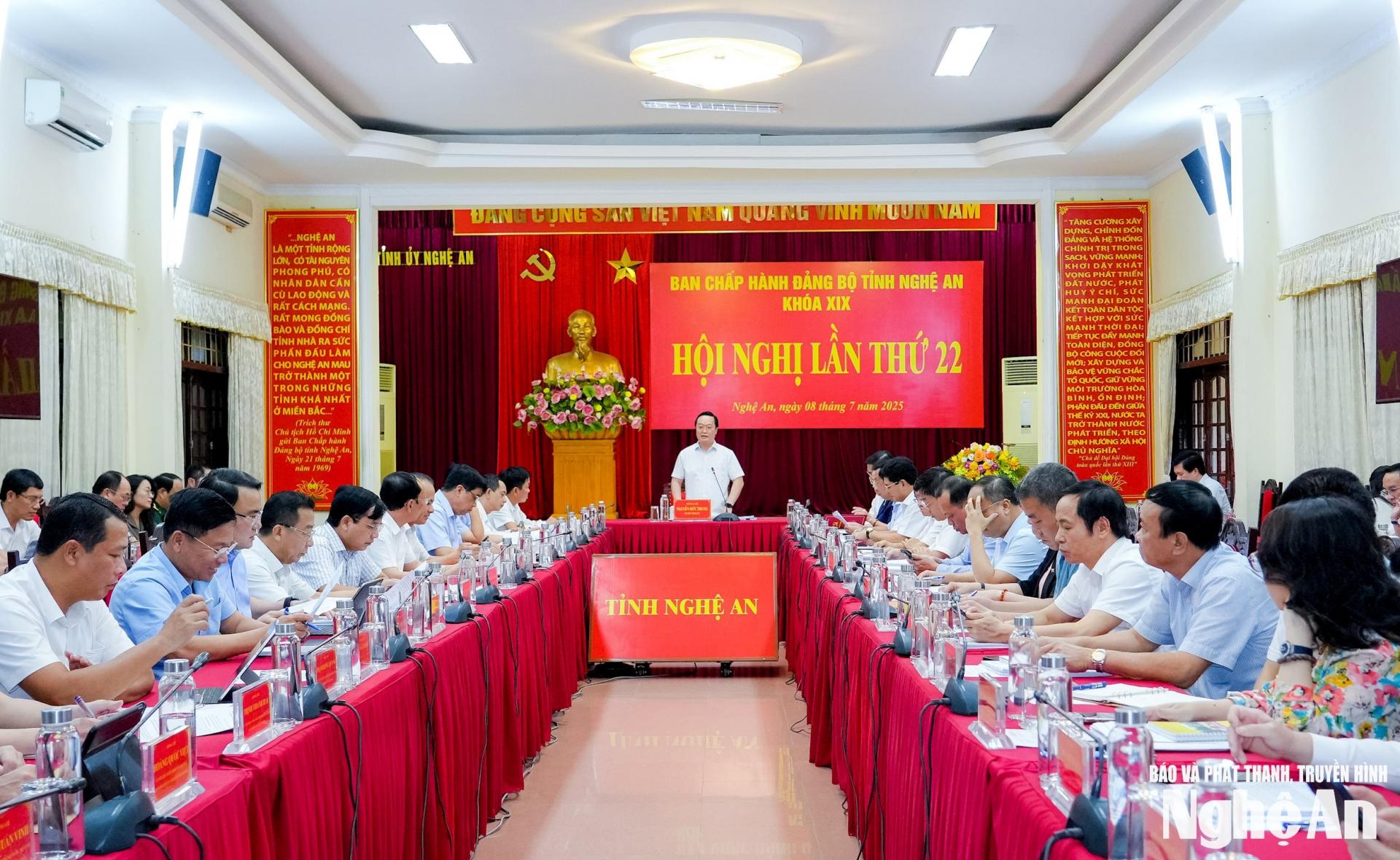 | Đồng chí Nguyễn Đức Trung - Bí thư Tỉnh ủy Nghệ An chủ trì hội nghị lần thứ 22 của Ban Chấp hành Đảng bộ tỉnh khoá XIX. |