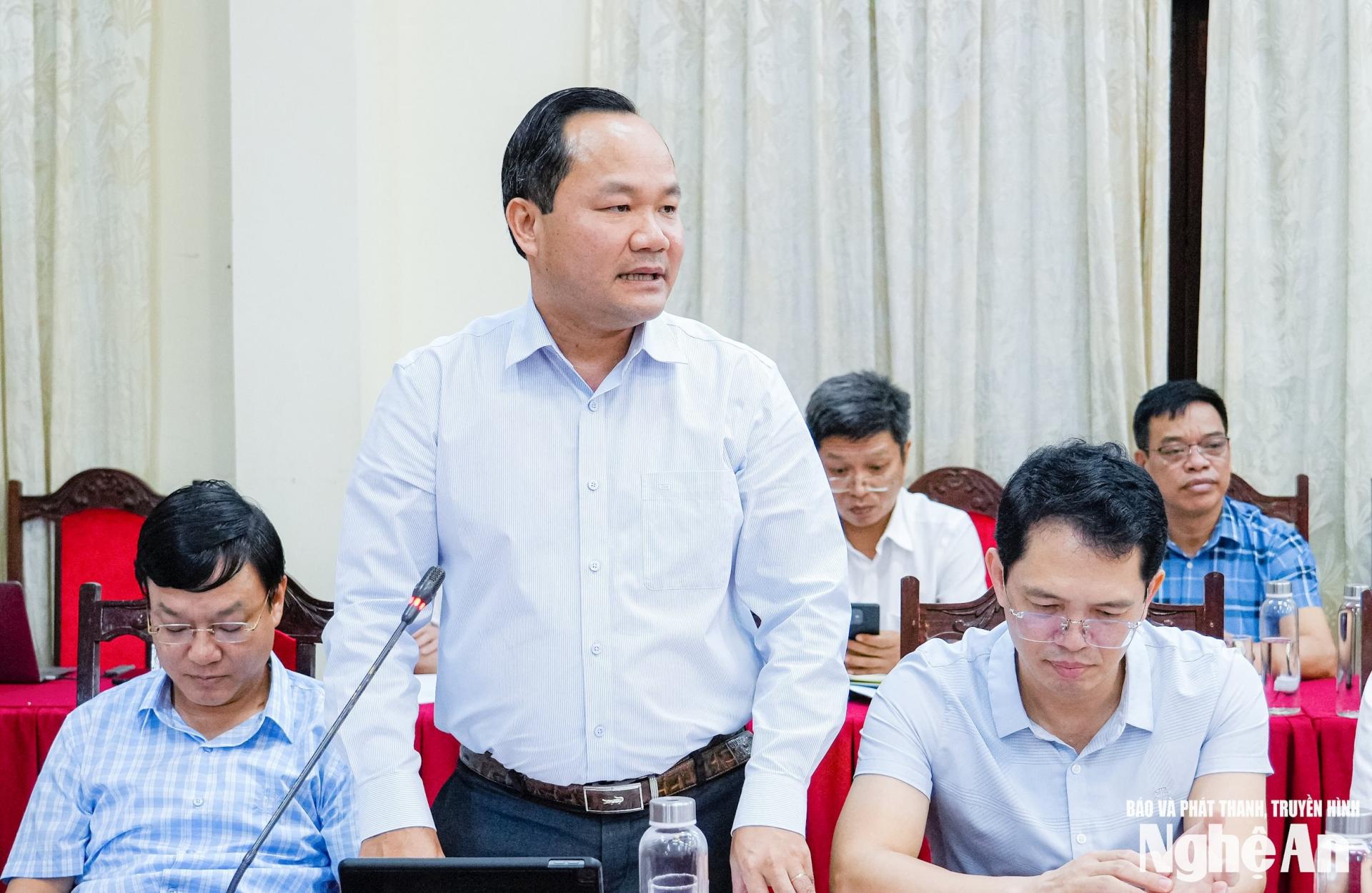 | Đồng chí Nguyễn Viết Hưng - Ủy viên Ban Chấp hành Đảng bộ tỉnh, Giám đốc Sở Nội vụ phát biểu tại hội nghị. |
