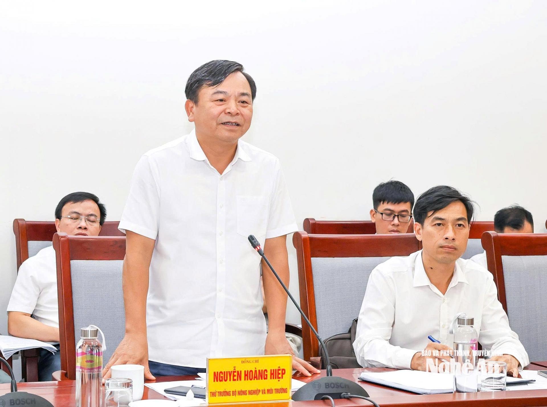 | Đồng chí Nguyễn Hoàng Hiệp - Thứ trưởng Bộ Nông nghiệp và Môi trường phát biểu tại cuộc họp. |
