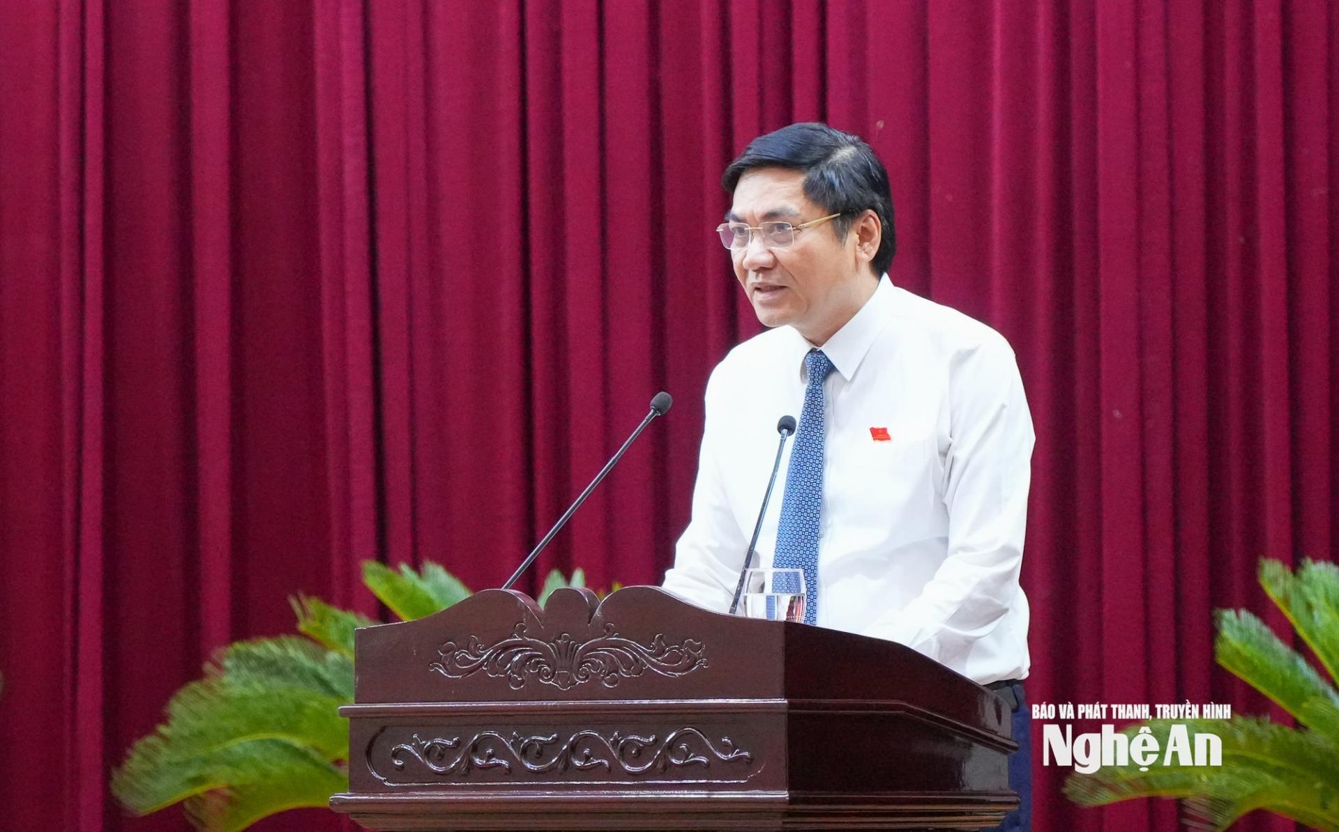 | Đồng chí Nguyễn Văn Đệ - Phó Chủ tịch UBND tỉnh phát biểu tại cuộc họp. |