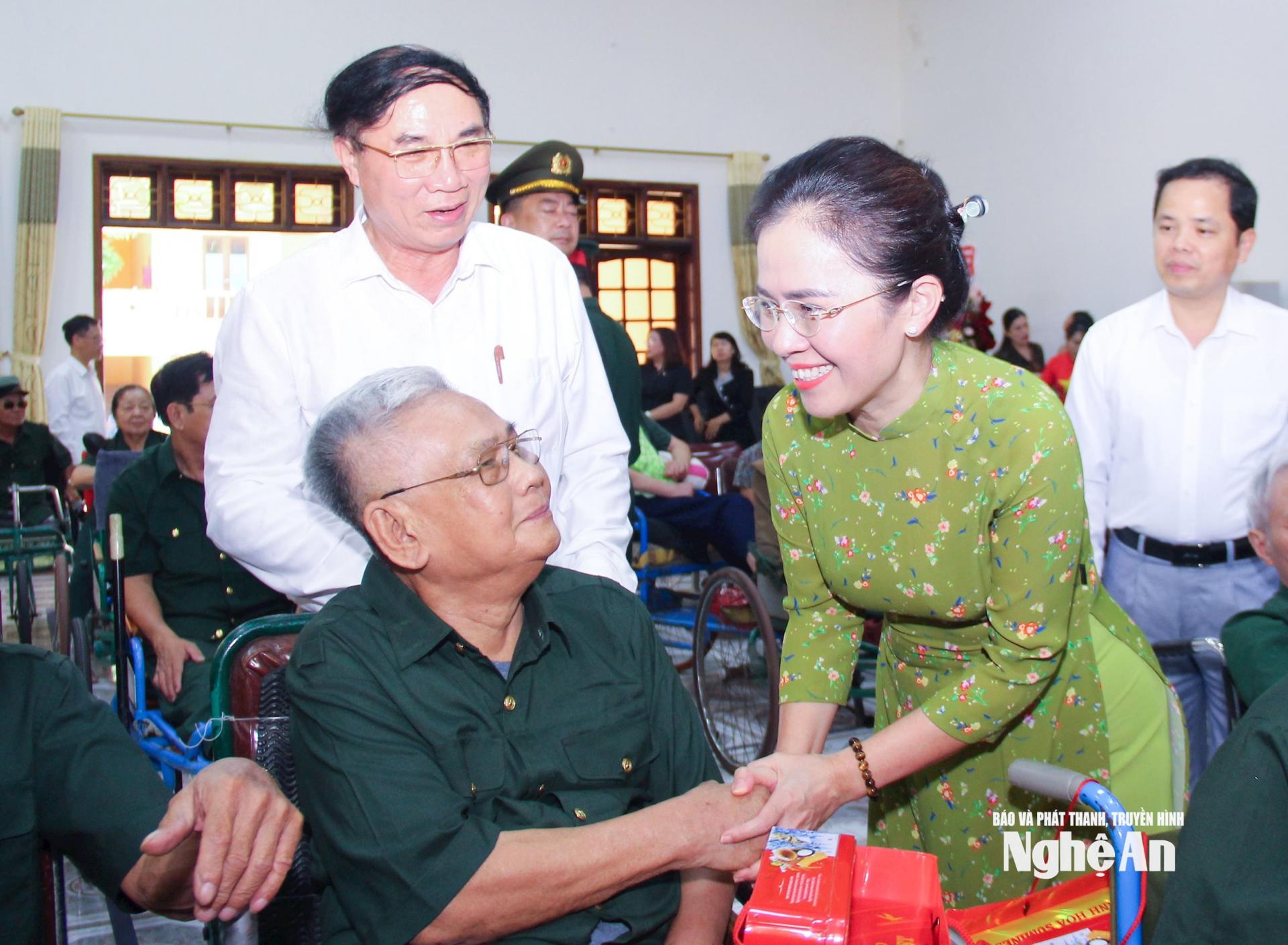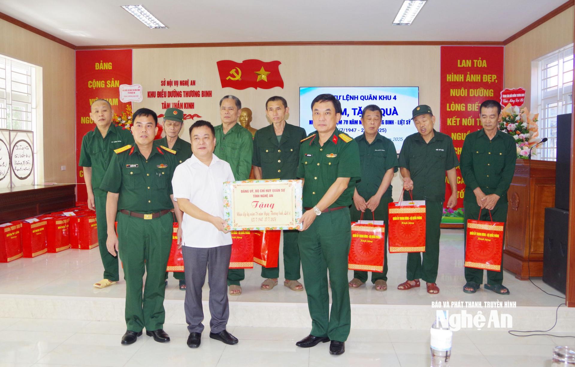 Dịp này, Đại tá Nguyễn Văn An – Phó Bí thư Đảng ủy, Chính ủy Bộ CHQS tỉnh Nghệ An đã trao quà của Bộ CHQS tỉnh cho hai trung tâm và các thương binh, bệnh binh đang được điều trị tại đây.