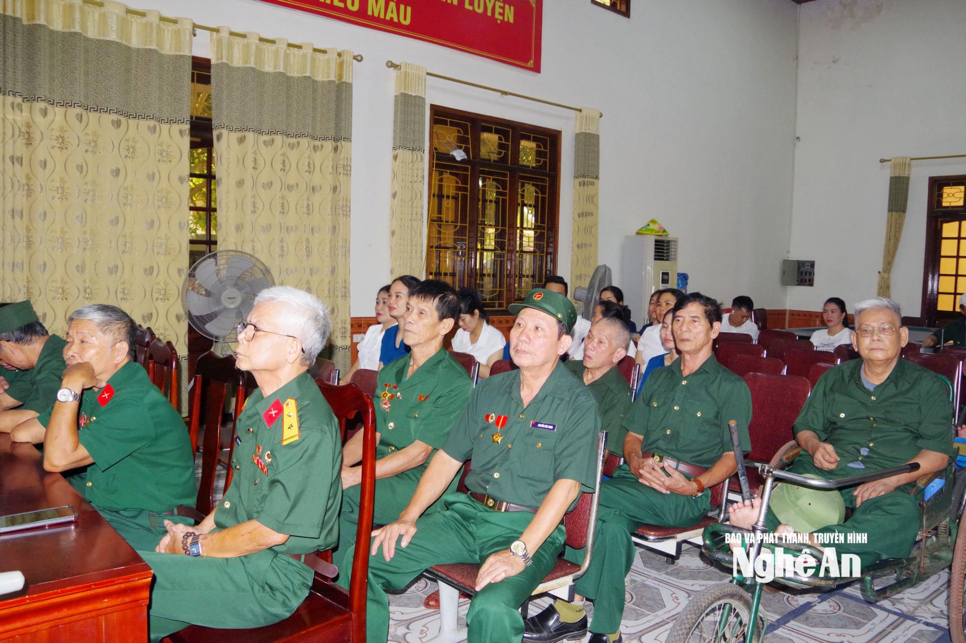 | Các thương binh, bệnh binh đang điều trị tại Trung tâm Điều dưỡng thương binh Nghệ An tham dự buổi trao quà. |