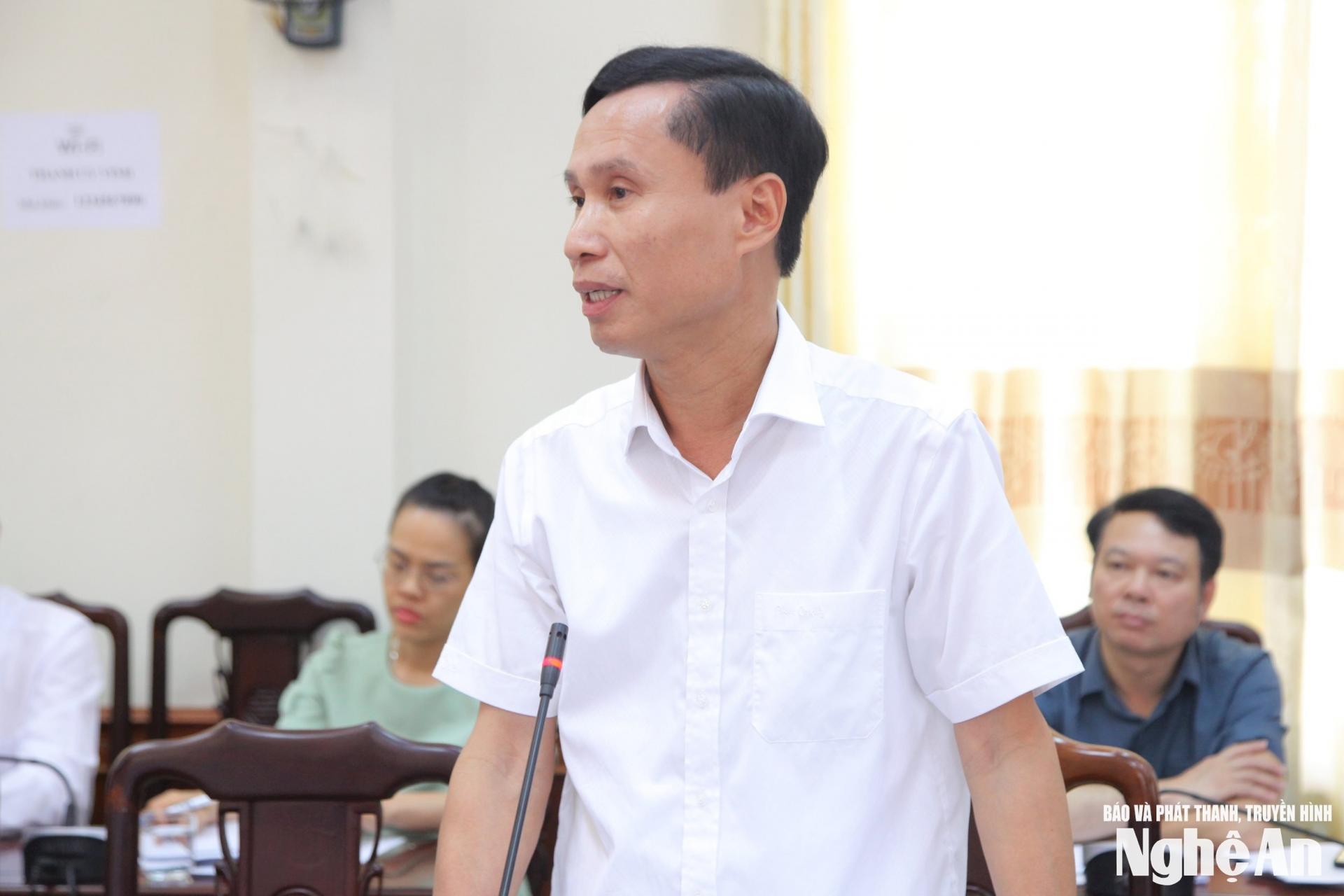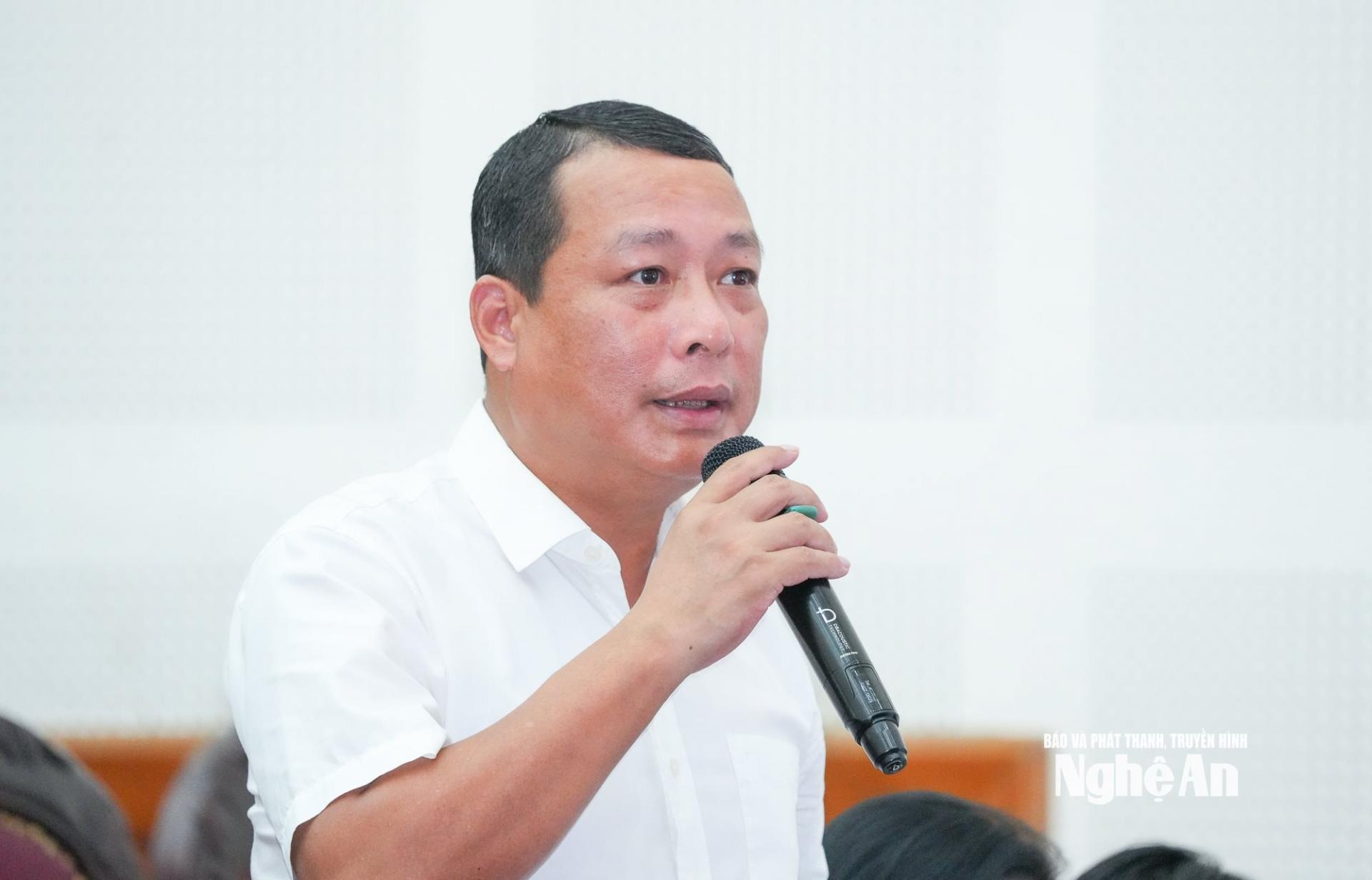 | Đại biểu Trần Minh Ngọc - Tổng Biên tập Báo và Phát thanh, Truyền hình Nghệ An thảo luận tại hội nghị. |