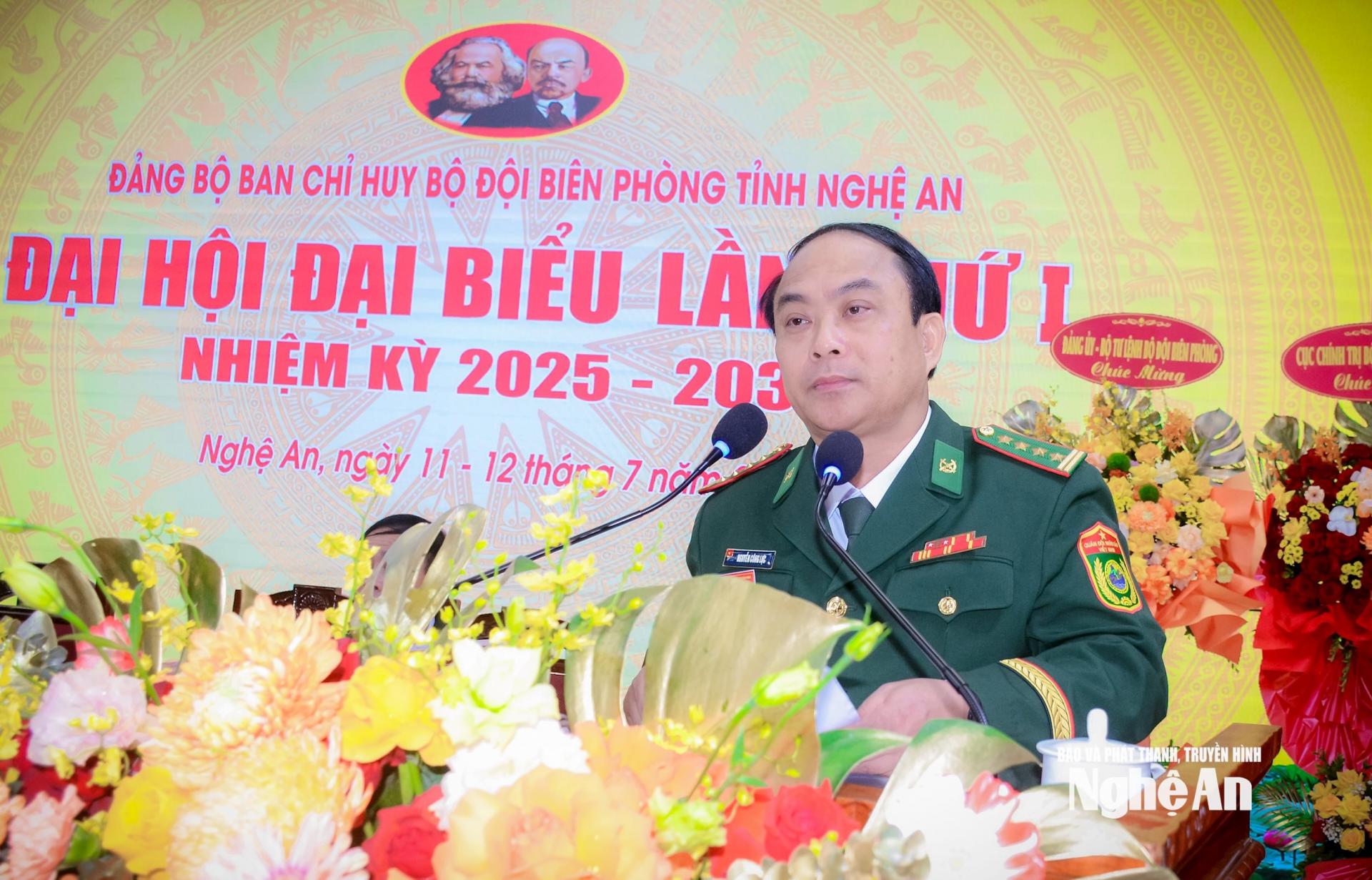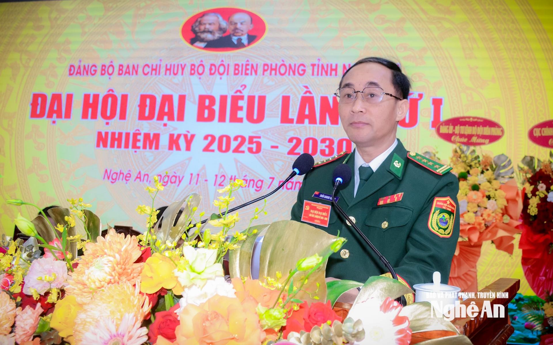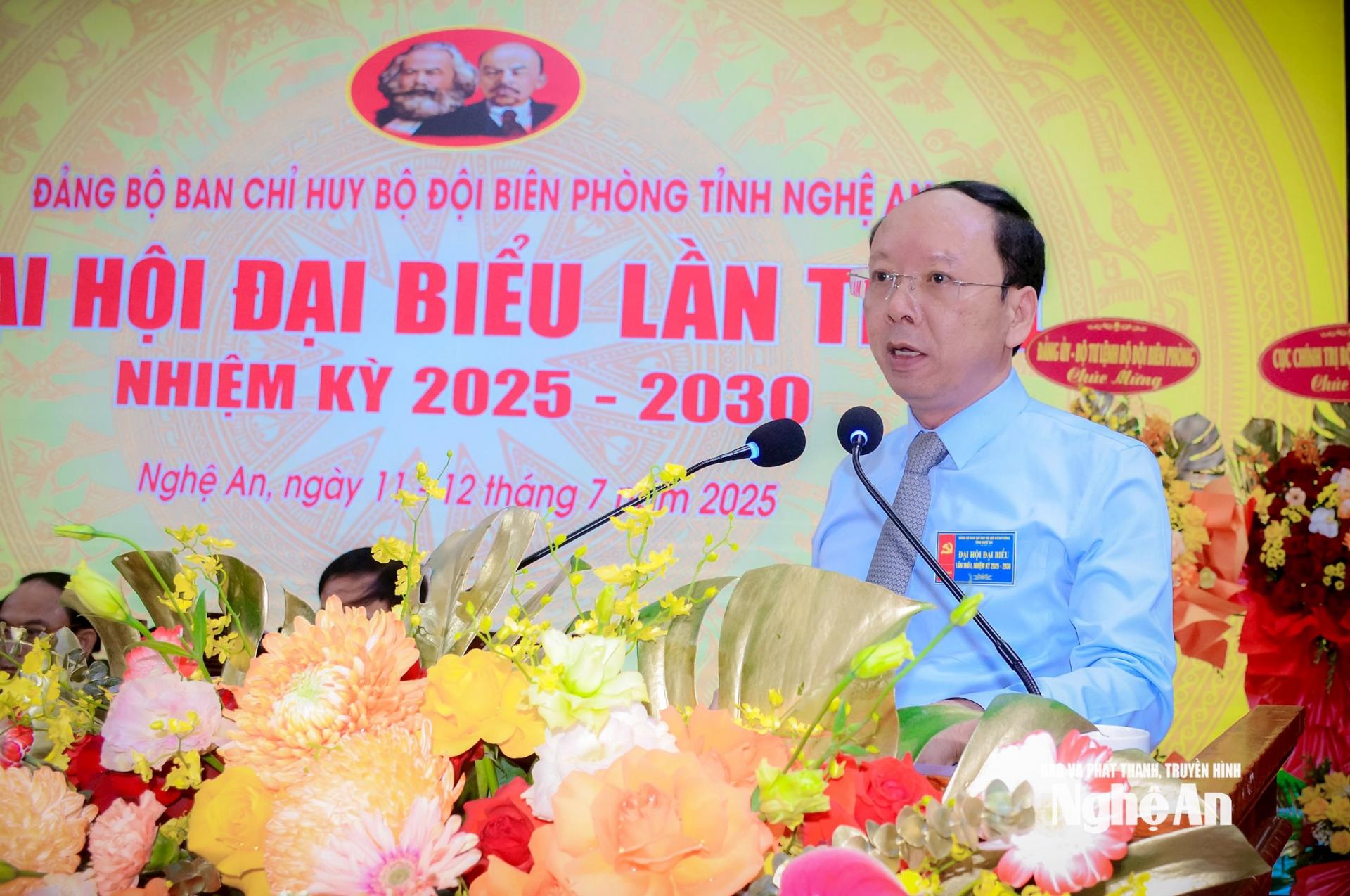 Thay mặt lãnh đạo tỉnh Nghệ An, đồng chí Bùi Thanh An - Ủy viên Ban Thường vụ Tỉnh ủy, Phó Chủ tịch Thường trực Ủy ban nhân dân tỉnh chúc mừng và biểu dương những thành tích mà Đảng bộ Ban Chỉ huy Bộ đội Biên phòng tỉnh đạt được trong nhiệm kỳ 2020-2025.