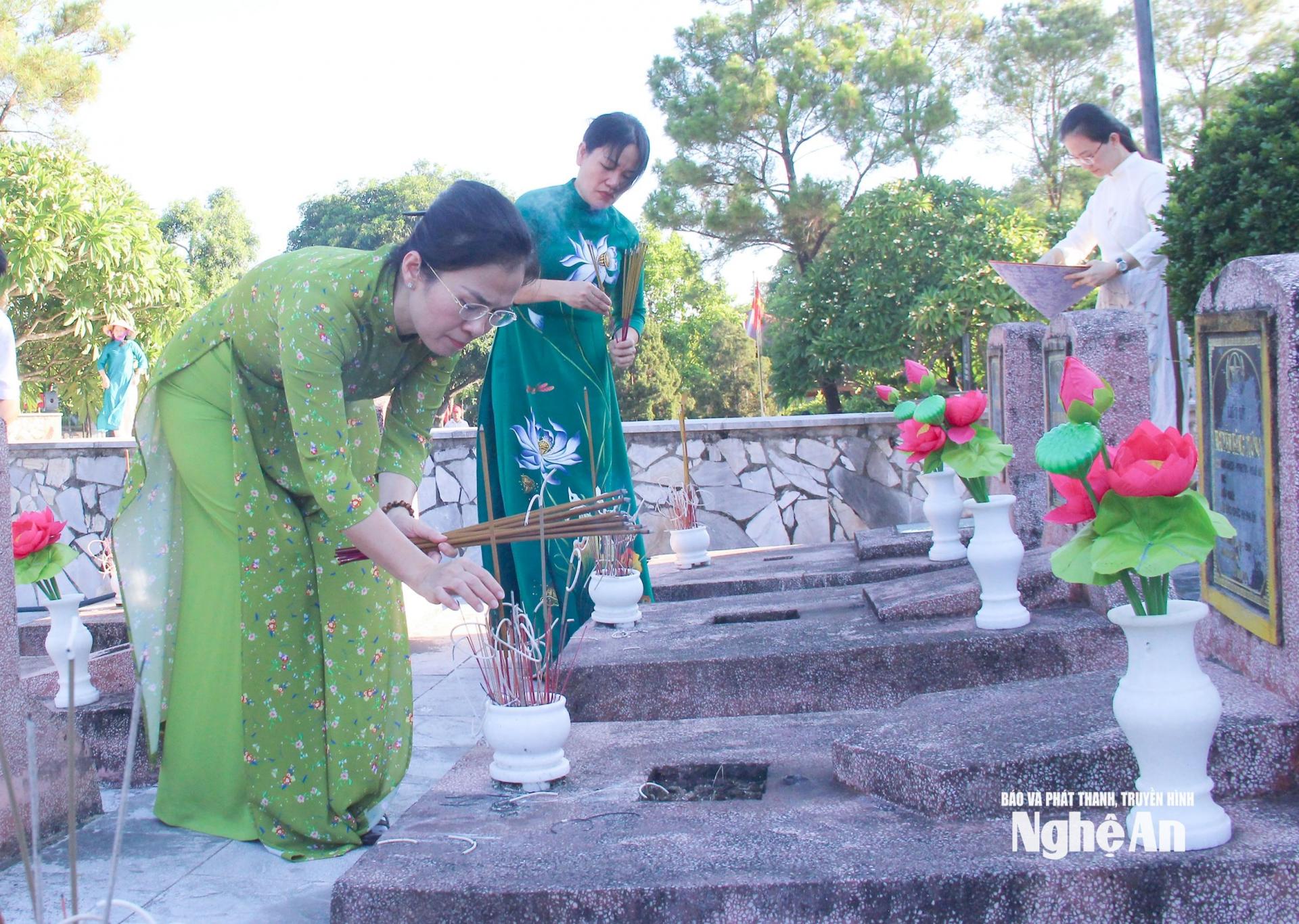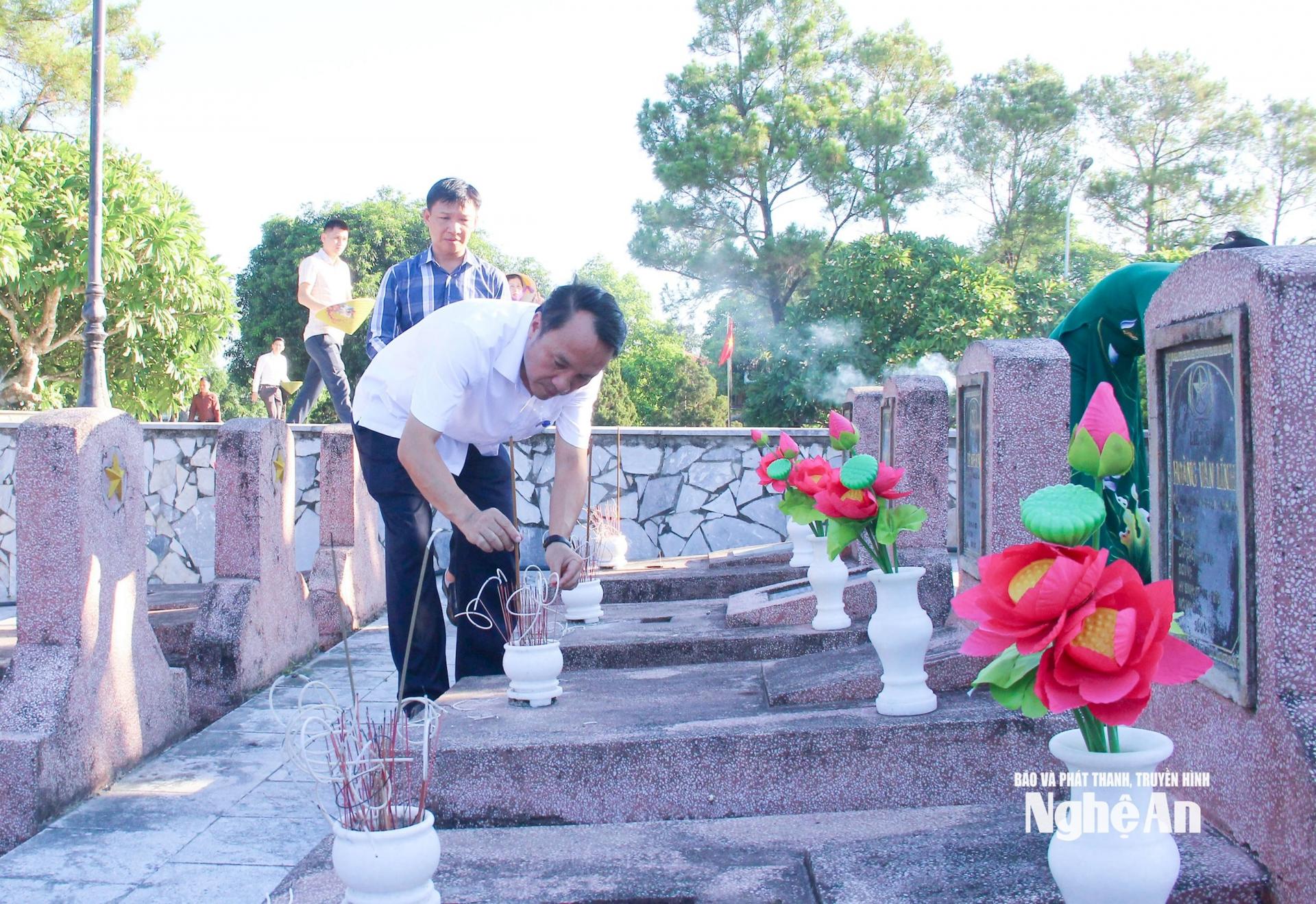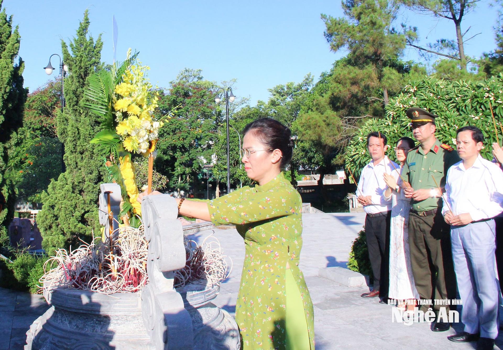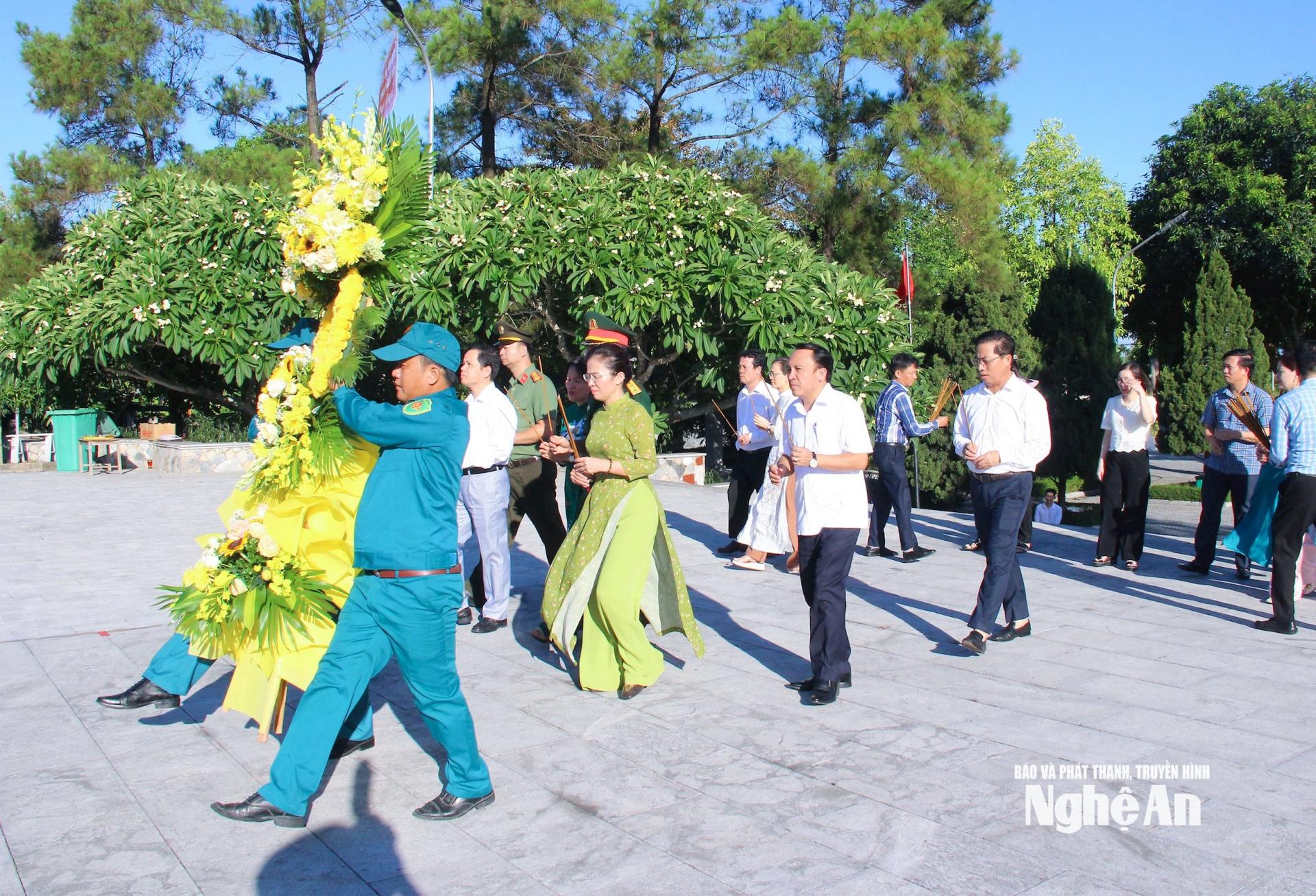 Đoàn công tác đã dâng hoa, dâng hương tại Nhà tưởng niệm Chủ tịch Hồ Chí Minh và trước Tượng đài các Anh hùng liệt sĩ, các phần mộ liệt sĩ tại Nghĩa trang liệt sĩ Nghi Lộc; thể hiện tấm lòng tri ân sâu sắc công lao to lớn của Chủ tịch Hồ Chí Minh vĩ đại và các Anh hùng liệt sĩ đã anh dũng hy sinh vì nền độc lập tự do của Tổ quốc, vì hạnh phúc của Nhân dân, vì nghĩa vụ quốc tế cao cả.