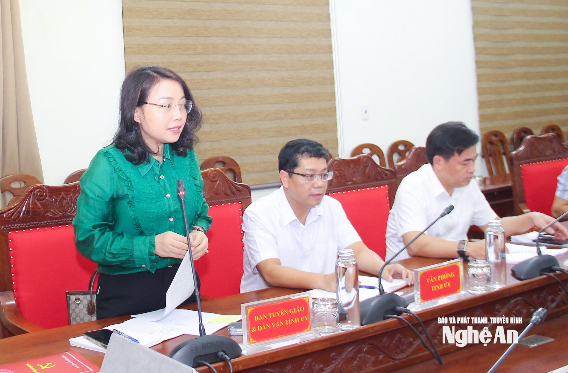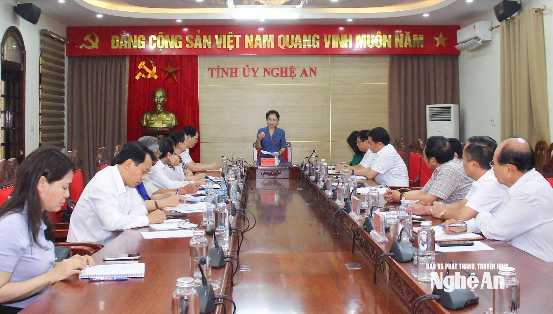 | Đồng chí Võ Thị Minh Sinh yêu cầu tập trung đẩy mạnh tuyên truyền 4 nghị quyết "xương sống" của Bộ Chính trị. |