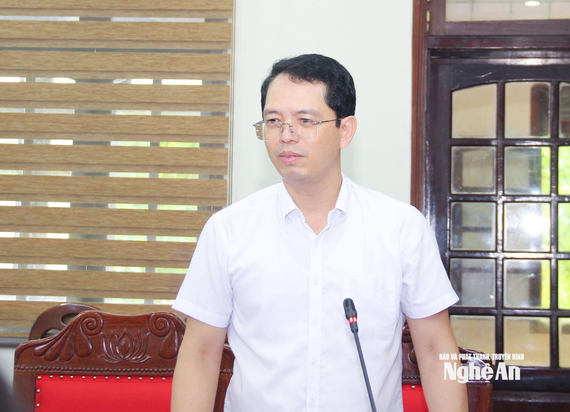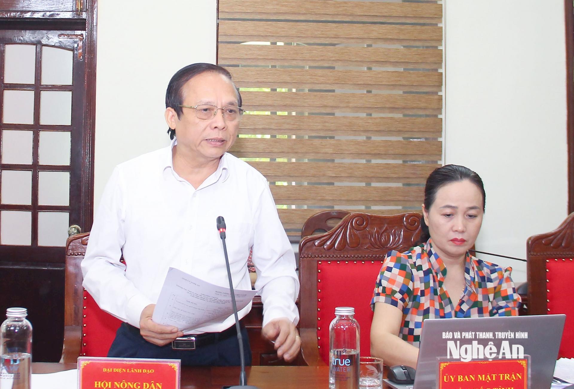 | Chủ tịch Hội Nông dân tỉnh Nguyễn Quang Tùng phát biểu tại cuộc làm việc. |