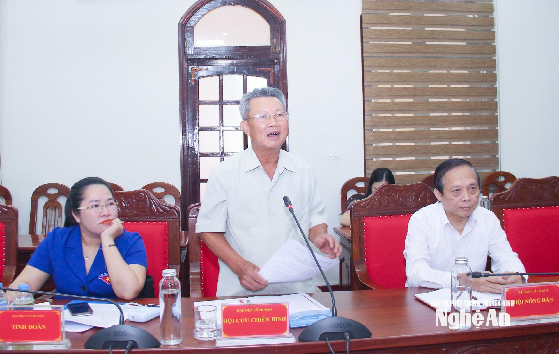 | Chủ tịch Hội Cựu chiến binh tỉnh Nguyễn Sỹ Hội nêu ý kiến tại cuộc làm việc. |