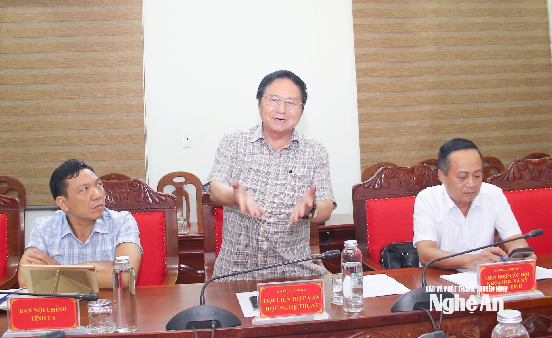 | Chủ tịch Hội Liên hiệp văn học và nghệ thuật tỉnh Hồ Mậu Thanh tham gia ý kiến tại cuộc làm việc. |