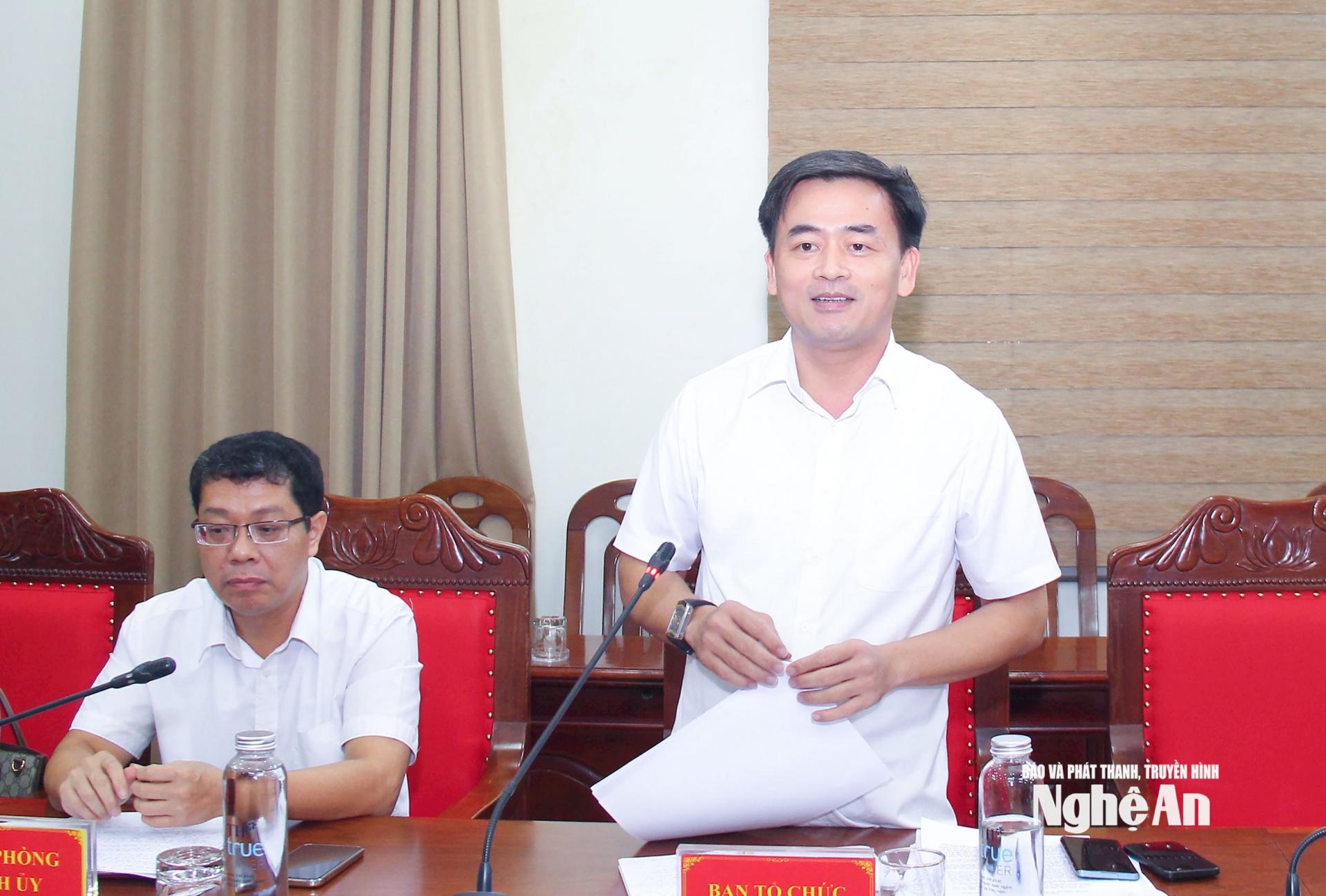| Phó trưởng Ban Tổ chức Tỉnh ủy Hồ Sỹ Nguyệt phát biểu làm rõ một số vấn đề liên quan đến sắp xếp, bố trí cán bộ cơ quan MTTQ và các tổ chức chính trị - xã hội cấp xã sau sắp xếp. |