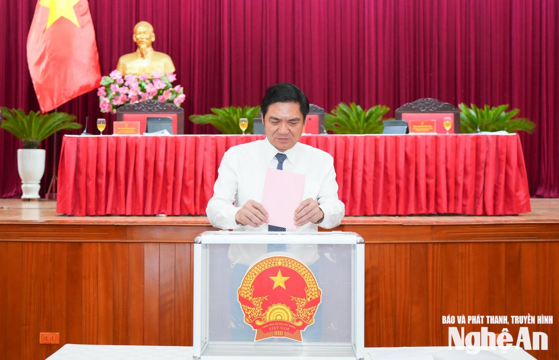 | Đồng chí Hoàng Nghĩa Hiếu - Phó Bí thư Thường trực Tỉnh ủy, Chủ tịch HĐND tỉnh bỏ phiếu bầu Ủy viên UBND tỉnh nhiệm kỳ 2021-2026. |