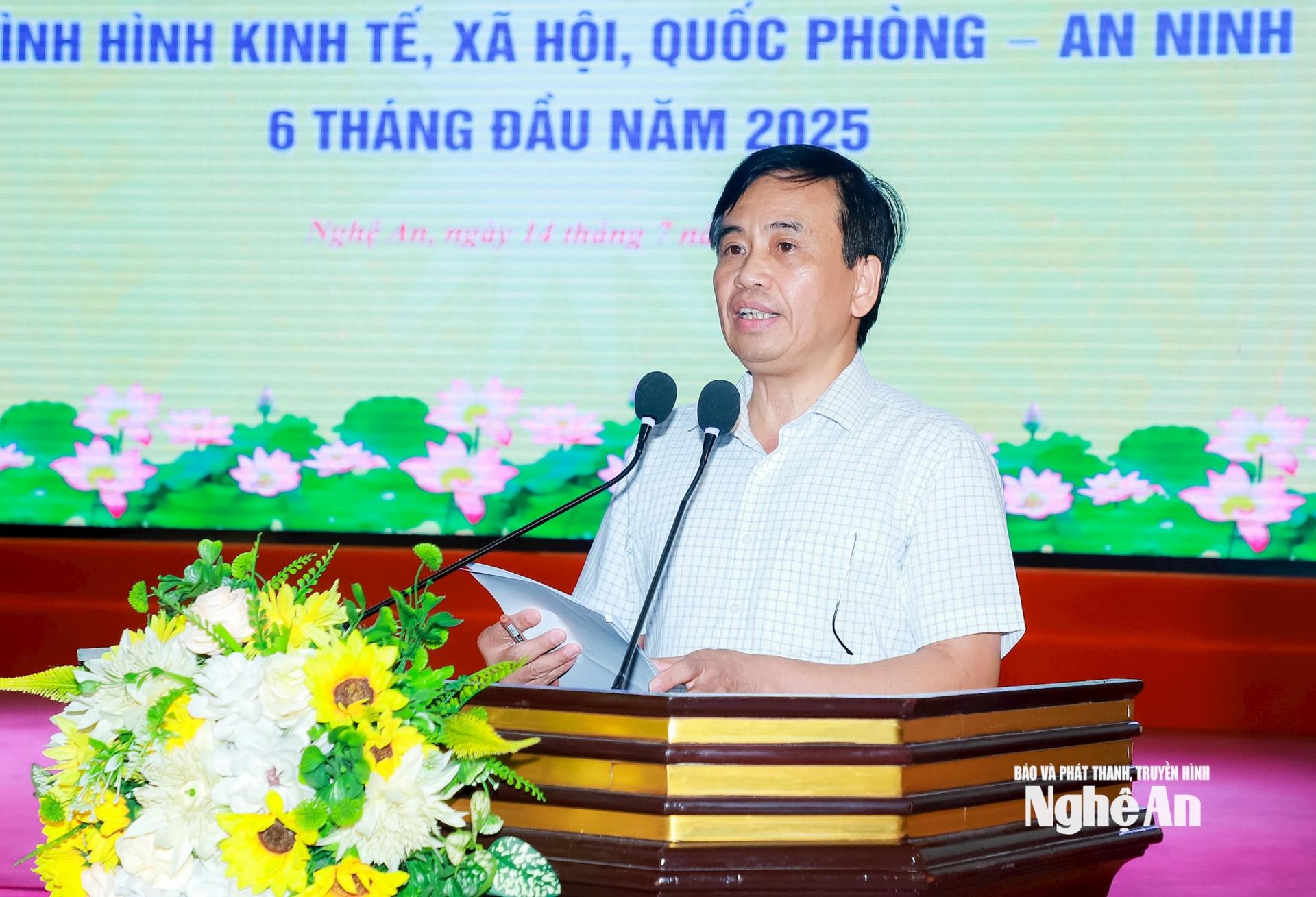 Trong 6 tháng đầu năm, tốc độ tăng trưởng trên địa bàn tỉnh Nghệ An ước đạt 8,24%, xếp thứ 12/34 tỉnh, thành phố; trong đó tốc độ tăng trưởng GRDP toàn tỉnh ước đạt 8,24%, xếp thứ 12/34 tỉnh, thành phố.