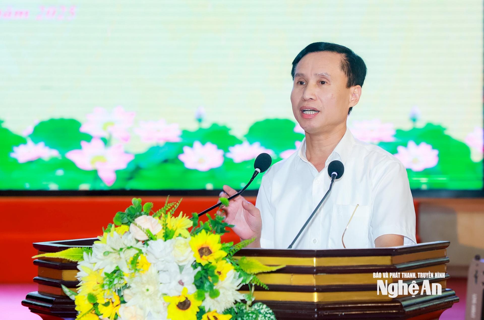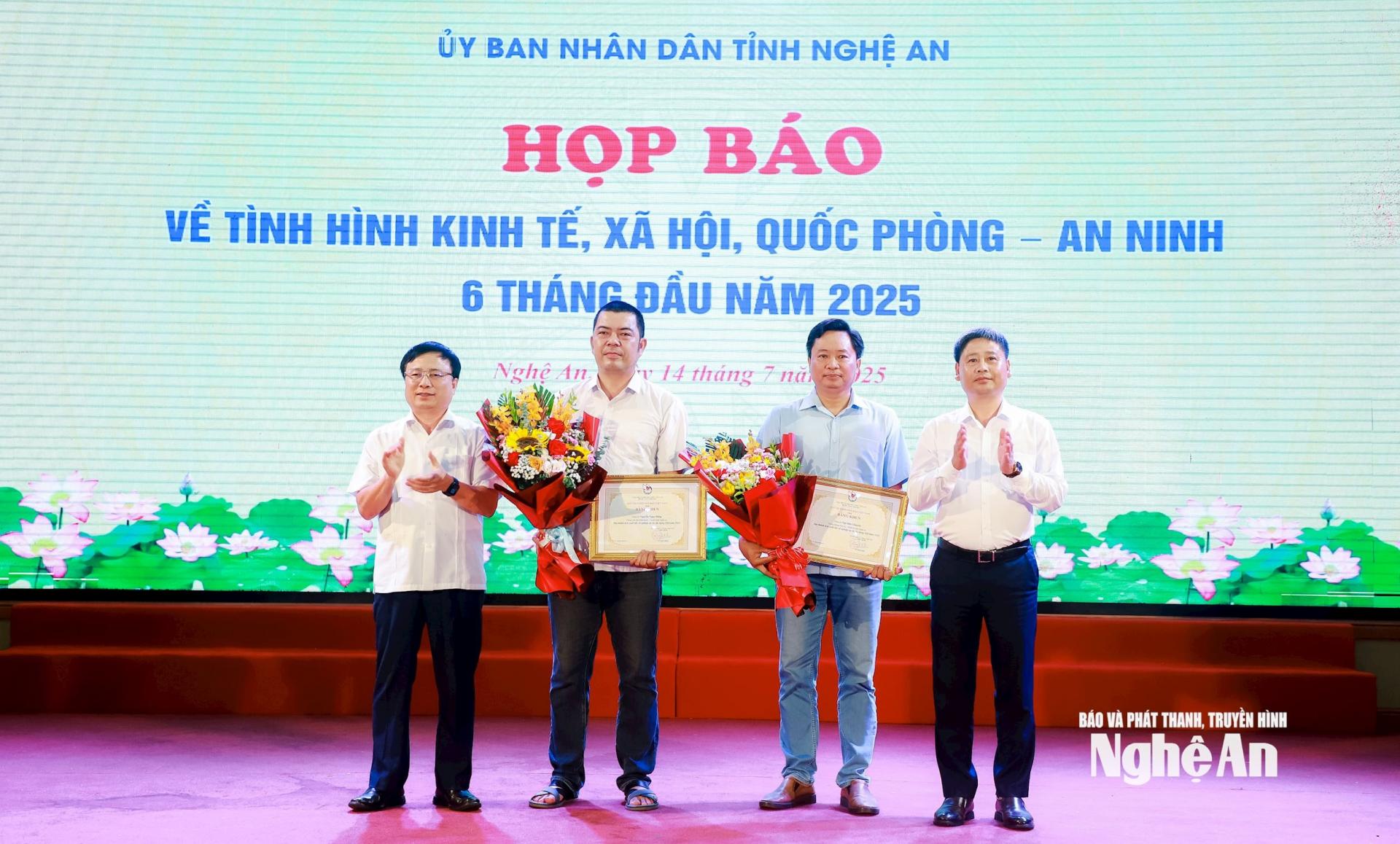 Cũng trong chương trình, các đồng chí: Bùi Đình Long - Ủy viên Ban Chấp hành Đảng bộ tỉnh, Phó Chủ tịch UBND tỉnh; Trần Minh Ngọc - Chủ tịch Hội Nhà báo tỉnh, Tổng Biên tập Báo và phát thanh, truyền hình Nghệ An đã trao tặng Bằng khen của Chủ tịch Hội Nhà báo Việt Nam đến 2 nhà báo nay thuộc cơ quan Báo và phát thanh, truyền hình Nghệ An vì có thành tích xuất sắc về nghiệp vụ và xây dựng Hội năm 2024, gồm: Nhà báo Ngô Đức Chuyên - Trưởng phòng Thời sự - Chính trị, Báo Nghệ An; Nhà báo Nguyễn Ngọc Dũng - Phóng viên Đài PT-TH Nghệ An (từ ngày 1/7/2025, Báo Nghệ An và Đài PT-TH Nghệ An hợp nhất thành Báo và phát thanh, truyền hình Nghệ An).