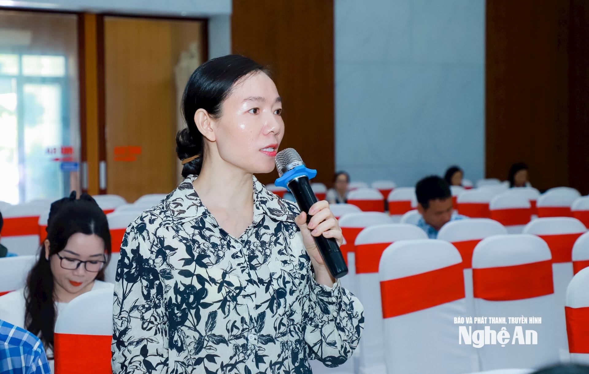 | Nhà báo Tuyến Lan - Báo Pháp luật Việt Nam đặt câu hỏi tại họp báo. Ảnh: Thành Duy |