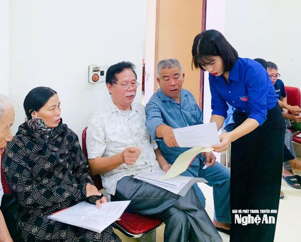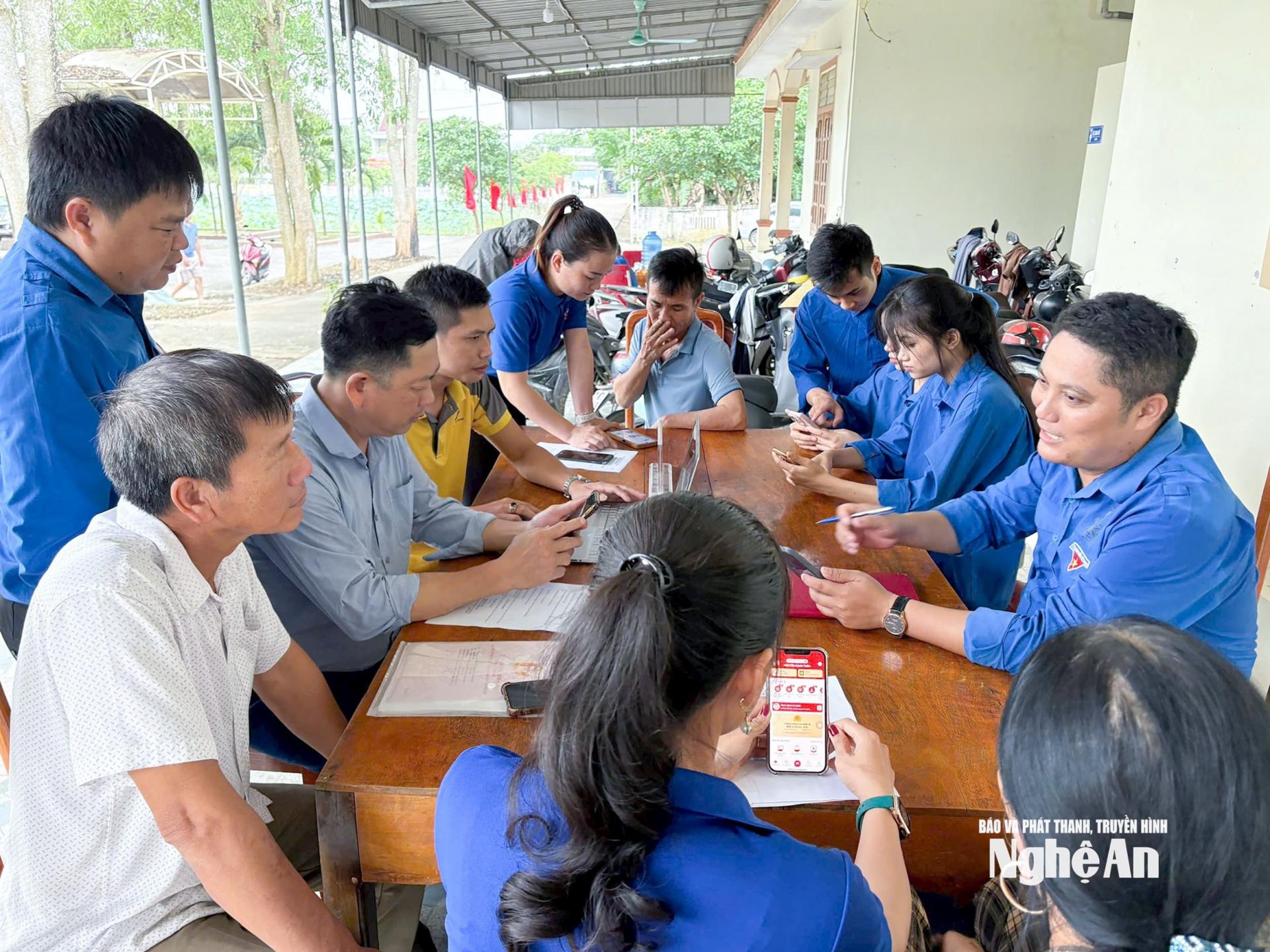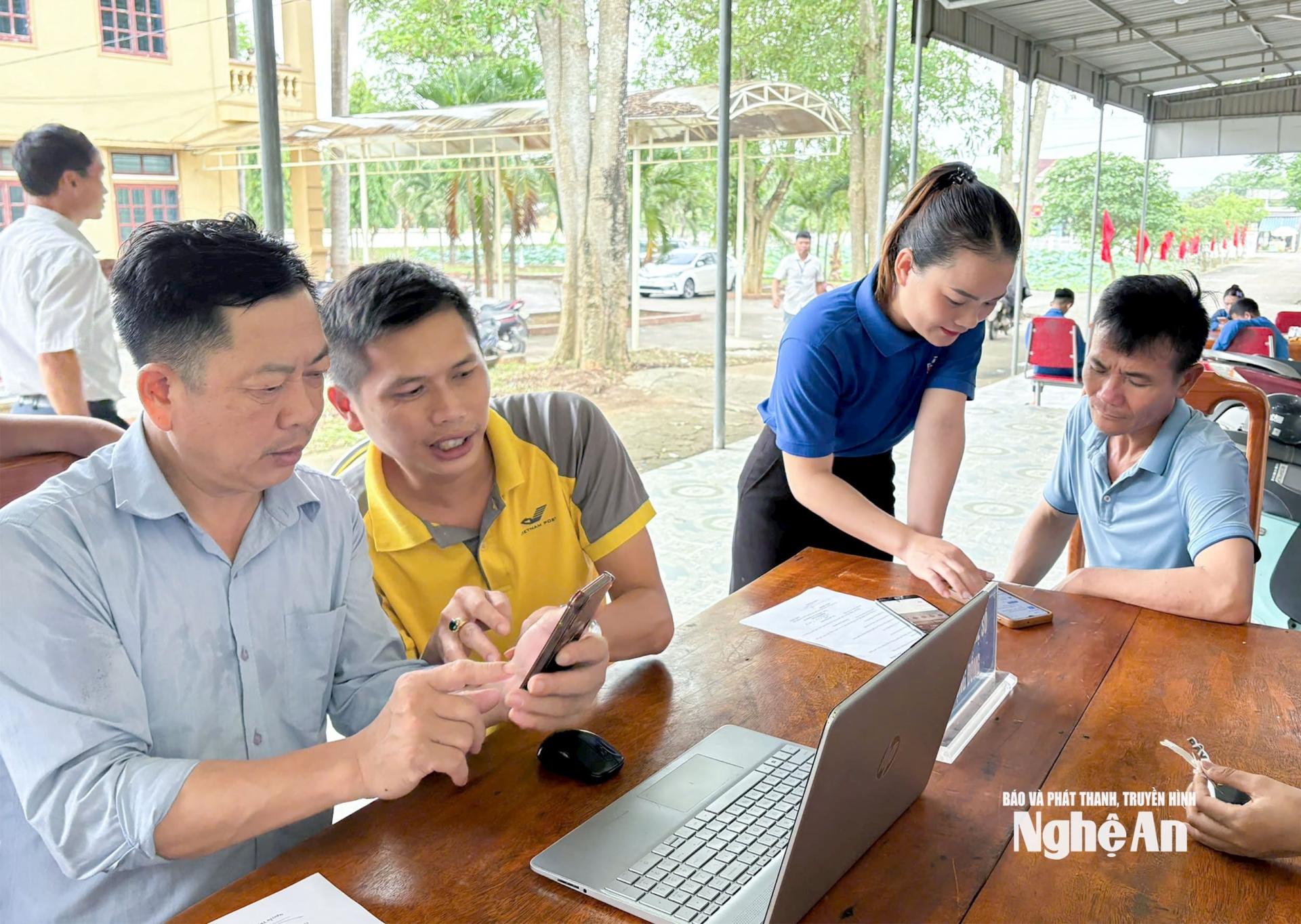 | Đội thanh niên tình nguyện xã Nghĩa Hưng hỗ trợ người dân làm thủ tục hành chính qua môi trường điện tử. Ảnh: Mai Hoa |