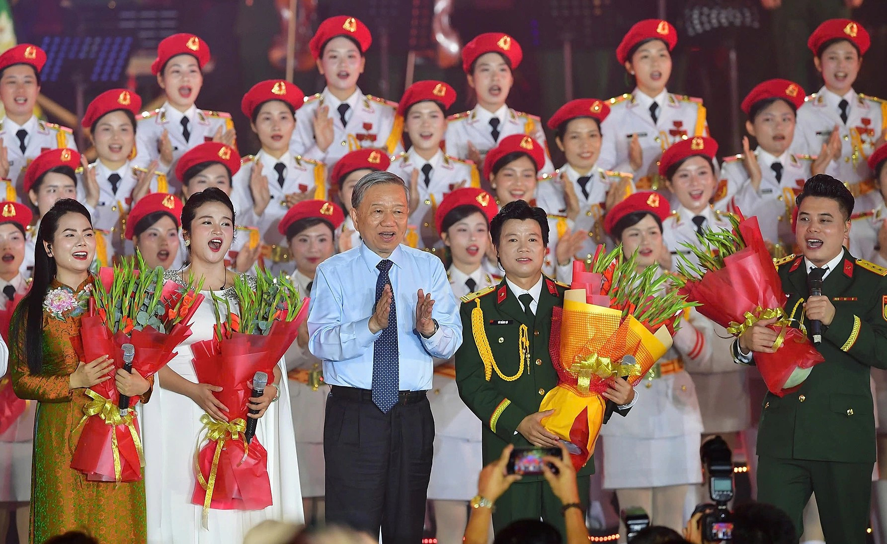 Chưa kể những tiết mục nghệ thuật được dàn dựng quy mô hoành tráng tại 3 miền Bắc - Trung - Nam với hơn 1.200 nghệ sĩ, khách mời, diễn viên, lực lượng quần chúng… hùng hậu, các hình thức thể hiện đa dạng từ MV, thực cảnh đến hoạt cảnh…