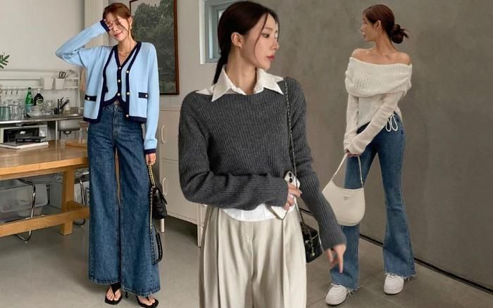 Vào mùa thu, người nhỏ nhắn nên lựa chọn đồ khiến mình trở nên cao ráo, phóng khoáng hơn. Mặc ngắn ở trên và dài ở dưới có thể tôn lên vóc dáng. Khi mặc áo khoác denim có thể kết hợp với quần thẳng lưng cao hoặc váy cạp cao.