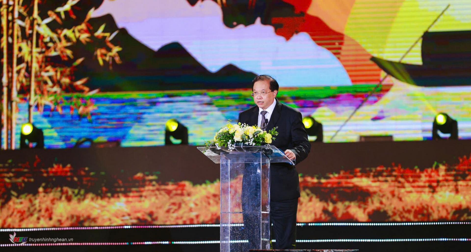 Lễ kỷ niệm 10 năm dân ca Ví, Giặm được UNESCO ghi danh ngày hôm nay là dịp để chúng ta nhìn lại chặng đường một thập kỷ cùng những nỗ lực của hai tỉnh trong công tác bảo tồn, phát huy giá trị di sản văn hoá phi vật thể đại diện của nhân loại. Để có được những kết quả như hôm nay, xin được nói lời tri ân đến các nghệ nhân, nghệ sĩ - những người “giữ hồn” di sản. Nhân dịp này tỉnh Nghệ An cũng xin được gửi lời cảm ơn sâu sắc đến Bộ Văn hóa, Thể thao và Du lịch, các bộ, ngành, cơ quan Trung ương, các nhà quản lý, các nhà nghiên cứu, nhân dân 2 tỉnh Nghệ An và Hà Tĩnh và cộng đồng người Nghệ trong nước và nước ngoài.