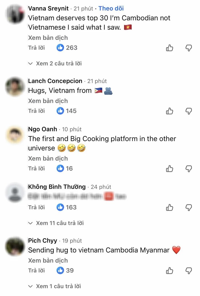 | Nhiều khán giả quốc tế để lại bình luận khi Hương Giang rớt Top 30. |