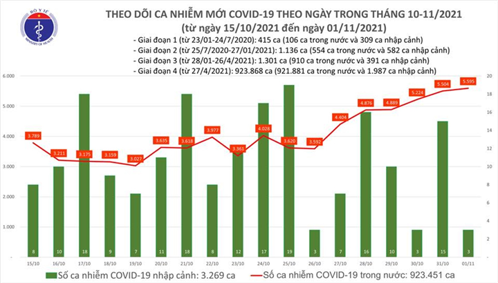 Tổng số ca điều trị đã khỏi bệnh, ra viện: 2.181 BN. Lũy tích số ca tử vong: 20 BN. Số BN hiện đang điều trị: 297 BN. Tổng số công dân từ các tỉnh phía Nam về từ ngày 1/10 đến nay là 28.151, trong đó đã phát hiện 393 ca dương tính (390 ca nhiễm mới, 3 ca tái dương tính).
