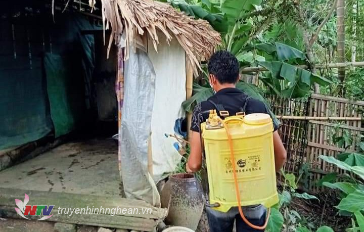 | Các bác sỹ, quân y Đồn BP khám bệnh, cấp thuốc miễn phí cho các đối tượng chính sách xã Thanh Thủy (Thanh Chương). |