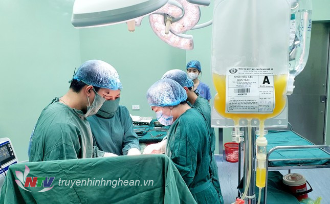 | Các y bác sĩ Bệnh viện Quân y 4 đang tiến hành phẫu thuật cho bệnh nhân N.V.Đ. |
