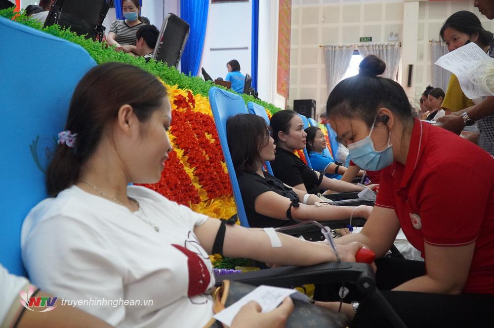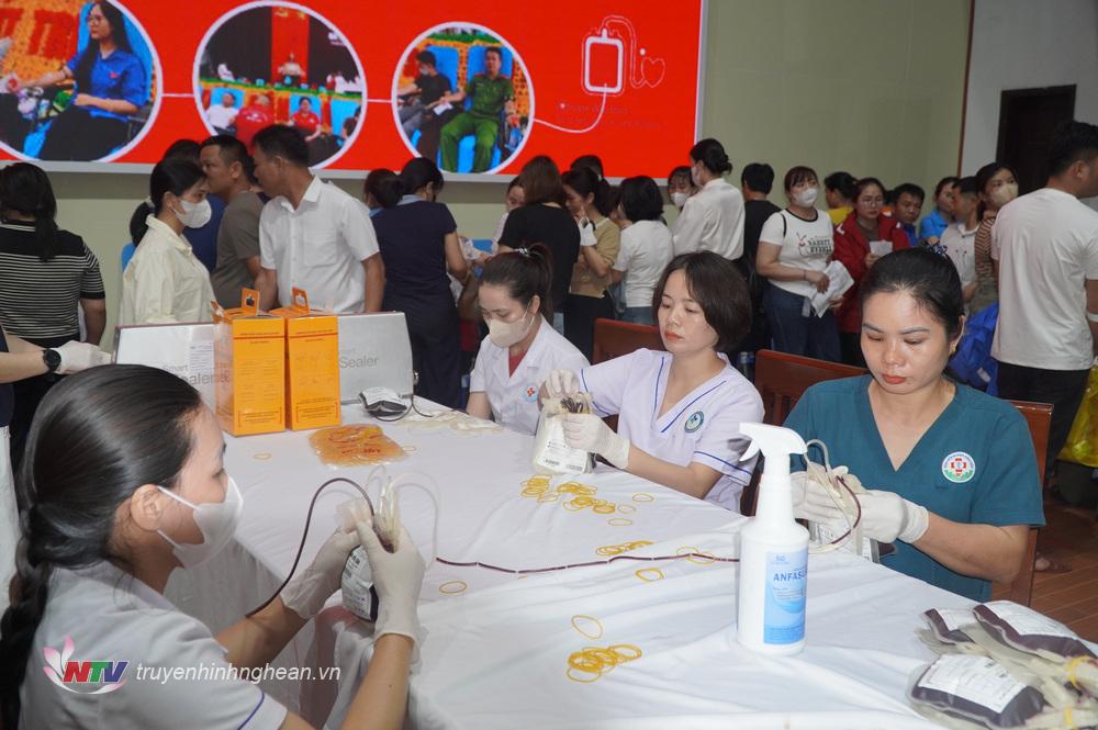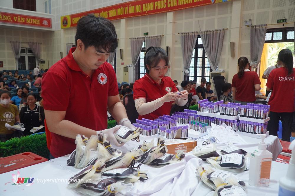 | Lượng máu thu về trong ngày hội “Chủ nhật đỏ” tại Diễn Châu trên 962 đơn vị máu. |