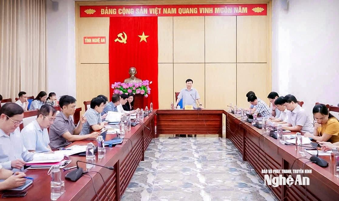 | Đồng chí Bùi Đình Long – Phó Chủ tịch UBND tỉnh làm việc với ngành Y tế và Bệnh viện Da liễu Nghệ An. Ảnh: SYTNA |